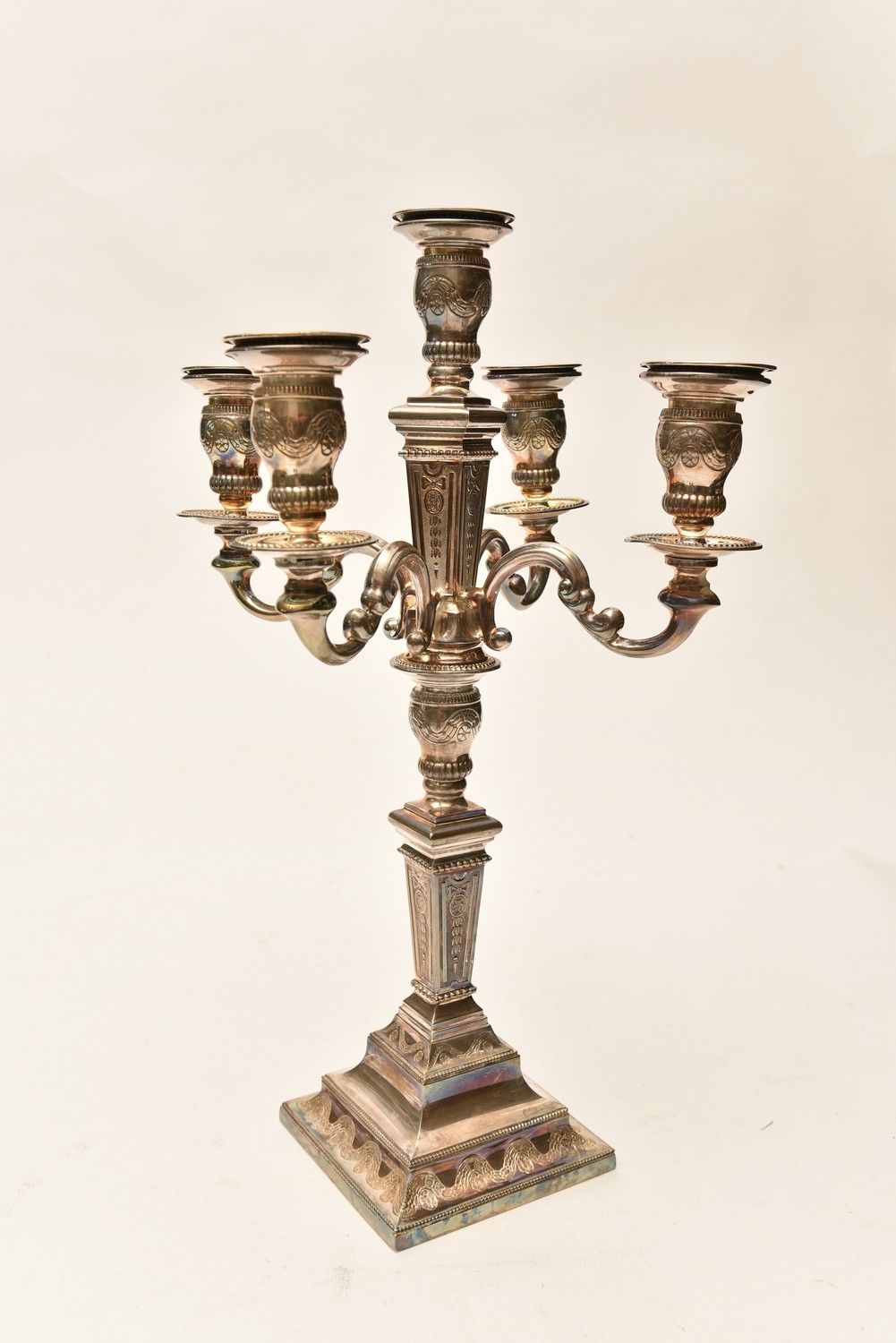 A SILVERPLATED CANDELABRA (45 CM H), LEONARD JOEL LOCAL DELIVERY SIZE: SMALL