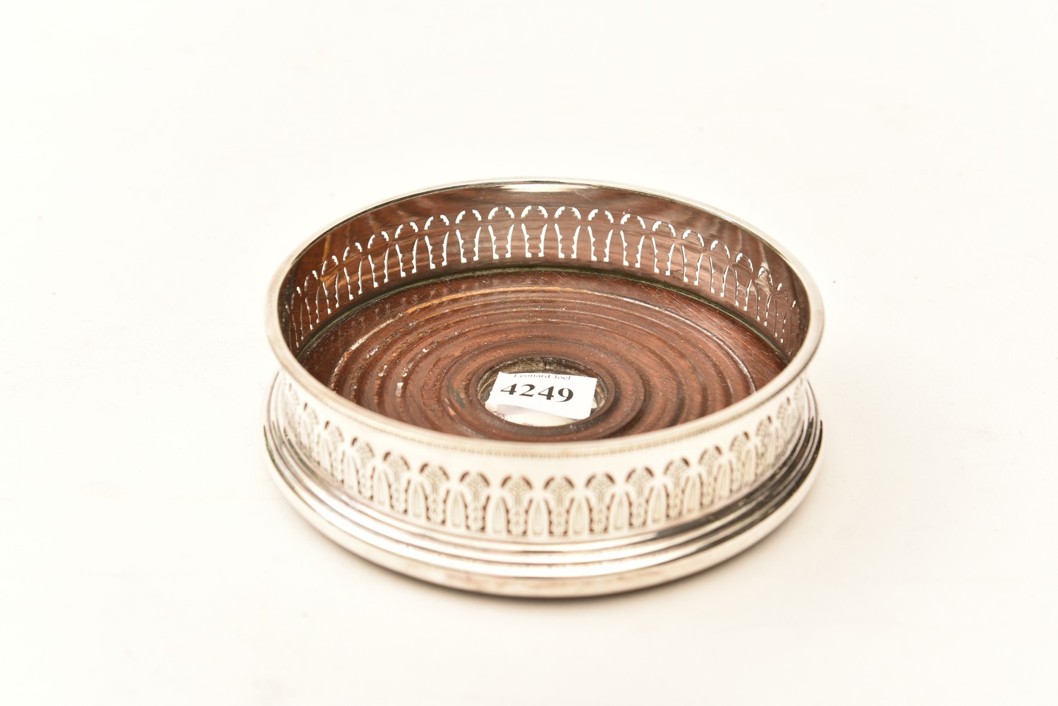 A BARKER & ELLIS EPNS MOUNTED BOTTLE COASTER (13.5 CM D), LEONARD JOEL LOCAL DELIVERY SIZE: SMALL