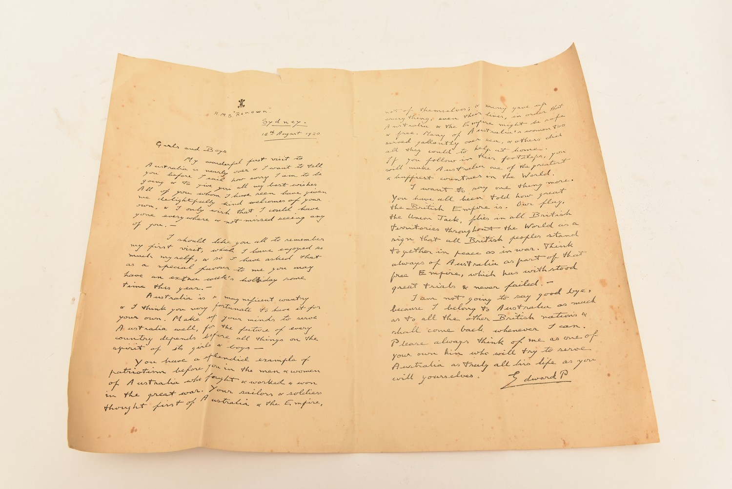 A FACSIMILE LETTER FROM EDWARD VIII TO THE CHILDREN OF AUSTRALIA, LEONARD JOEL LOCAL DELIVERY SIZE: SMALL