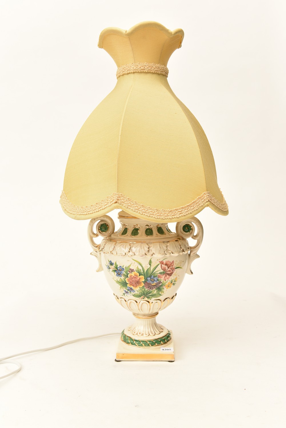 AN ITALIAN PORCELAIN FLORAL PAINTED LAMP BASE (65 CM H), LEONARD JOEL LOCAL DELIVERY SIZE: SMALL