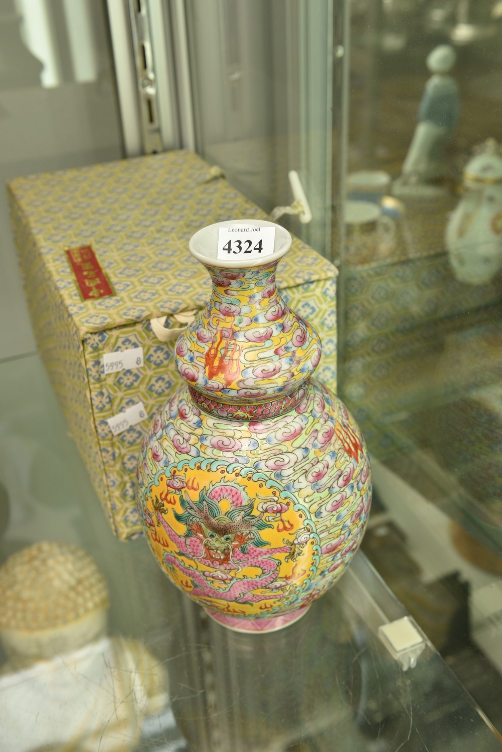 A CHINESE DOUBLE GOURD ENAMELLED VASE, BOXED, 20TH CENTURY, LEONARD JOEL LOCAL DELIVERY SIZE: SMALL (22 CM H)
