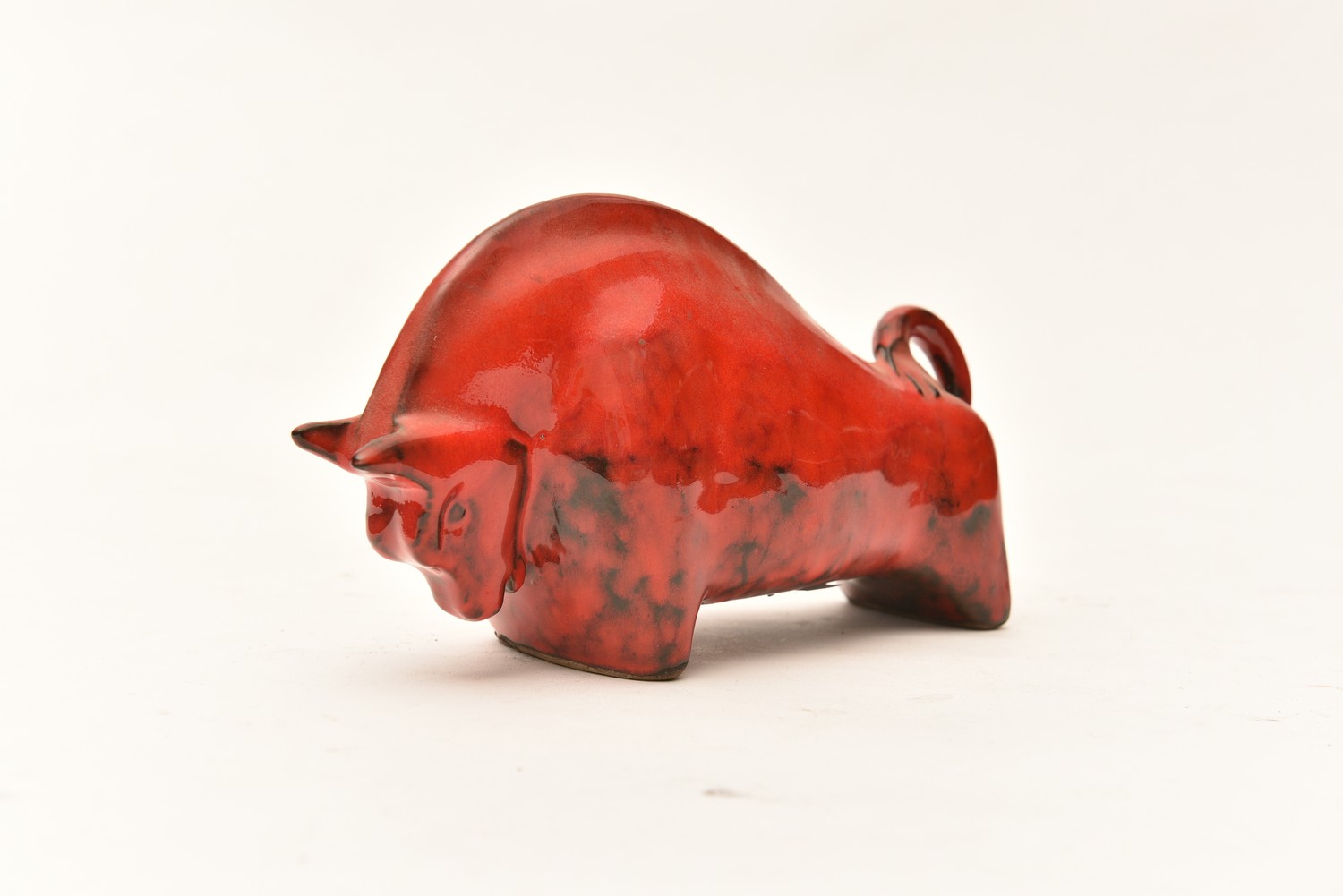 A MID CENTURY ITALIAN CERAMIC BULL FIGURINE (22 CM W), LEONARD JOEL LOCAL DELIVERY SIZE: SMALL