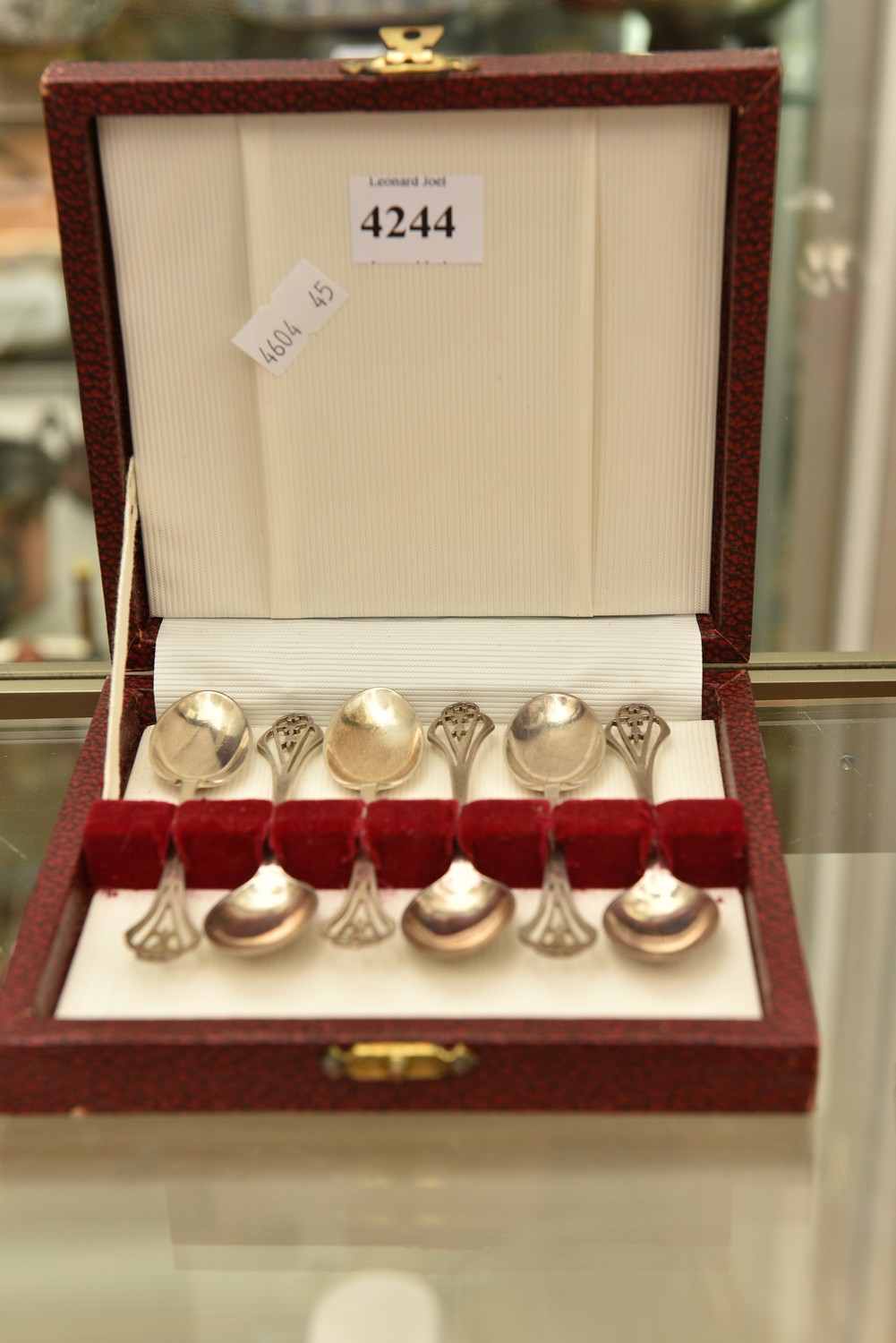 A CASED SET OF ART NOUVEAU STERLING SILVER COFFEE SPOONS (13 CM W), LEONARD JOEL LOCAL DELIVERY SIZE: SMALL