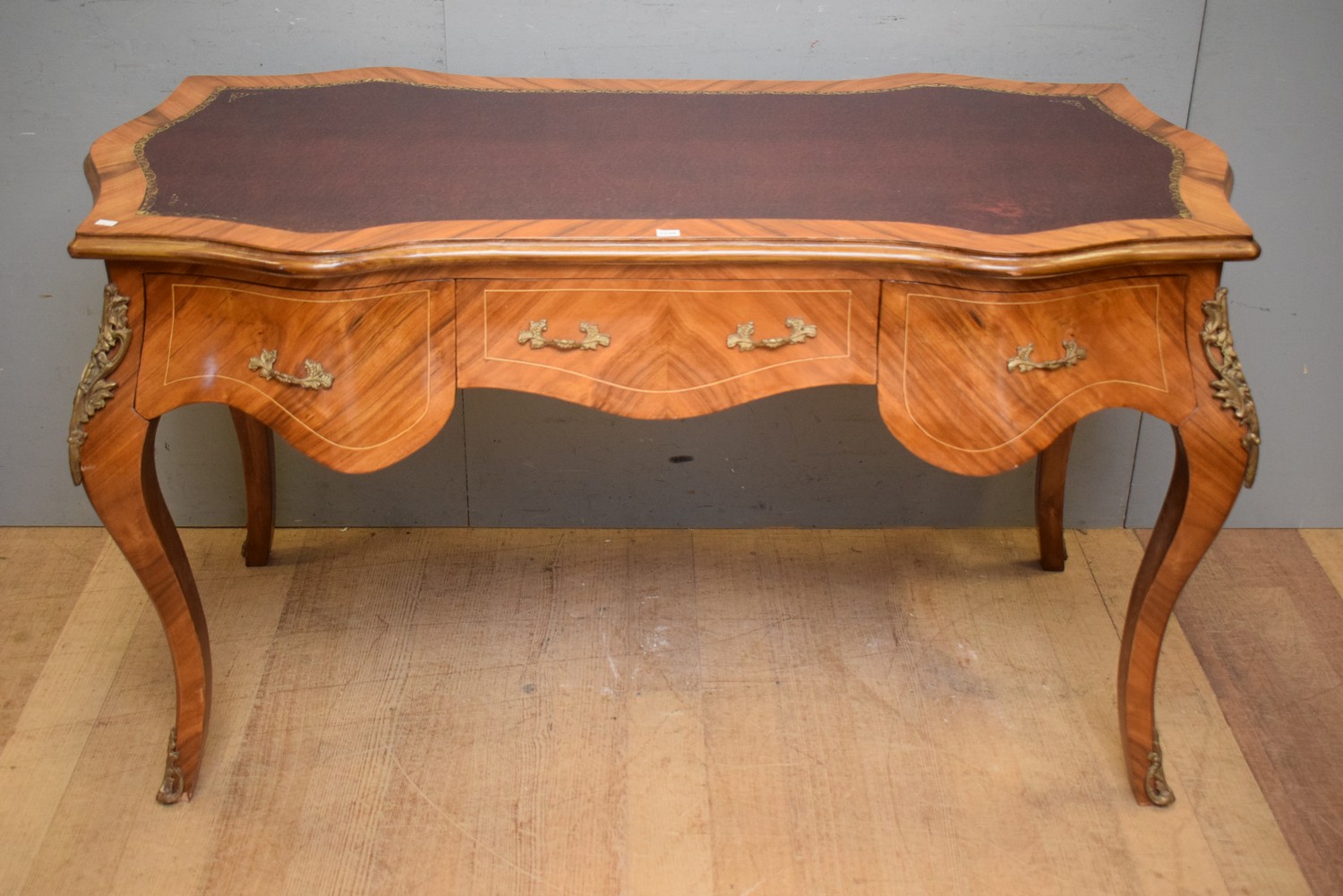 A FRENCH LOUIS XV STYLE BUREAU PLAT WITH THREE DRAWERS (A/F) (81H x 148W x 75D CM) (LEONARD JOEL DELIVERY SIZE: LARGE)
