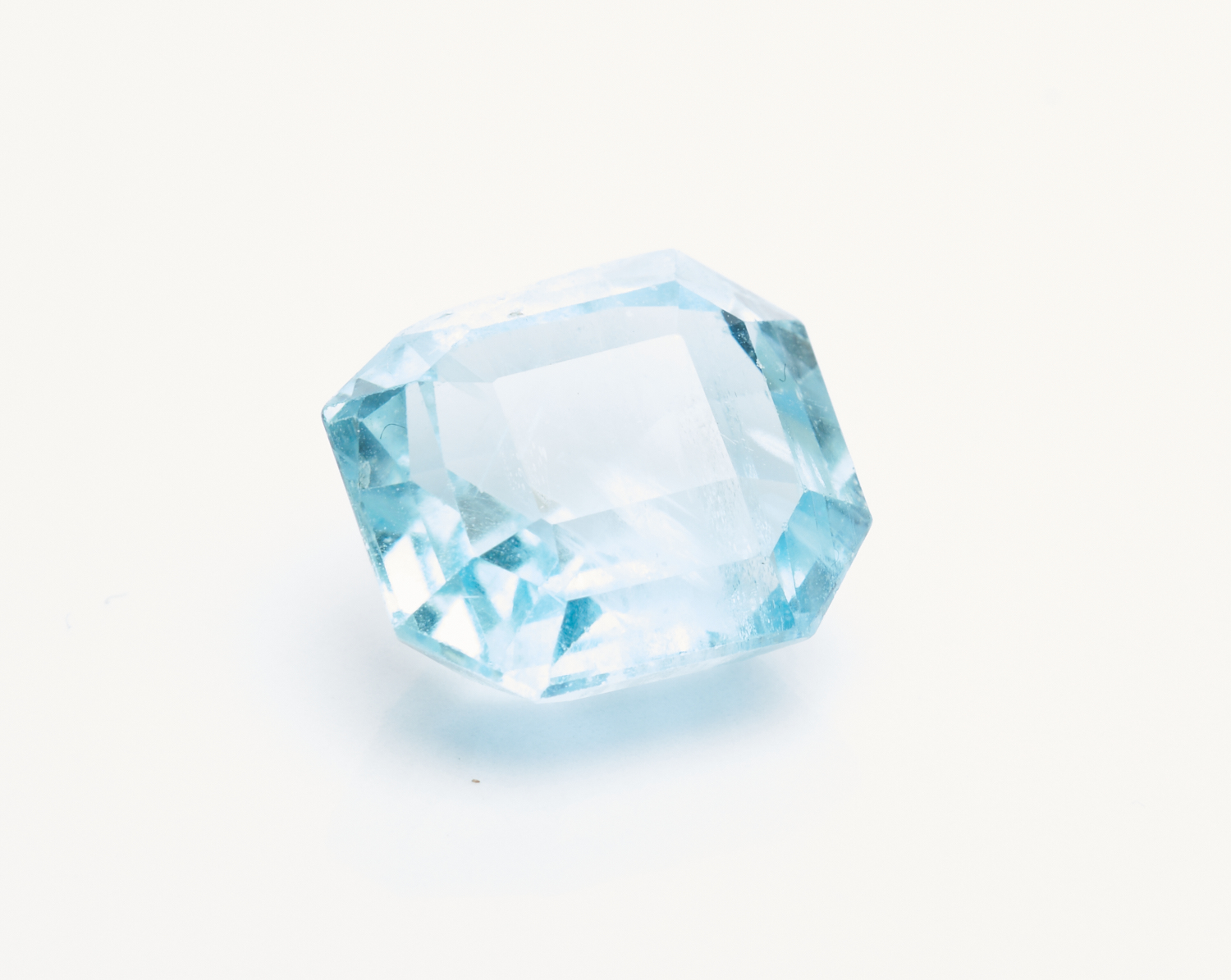 A LOOSE HEXAGONAL CUT AQUAMARINE WEIGHING 7.18CTS, MEASURING 12.23x10.64x7.90MM