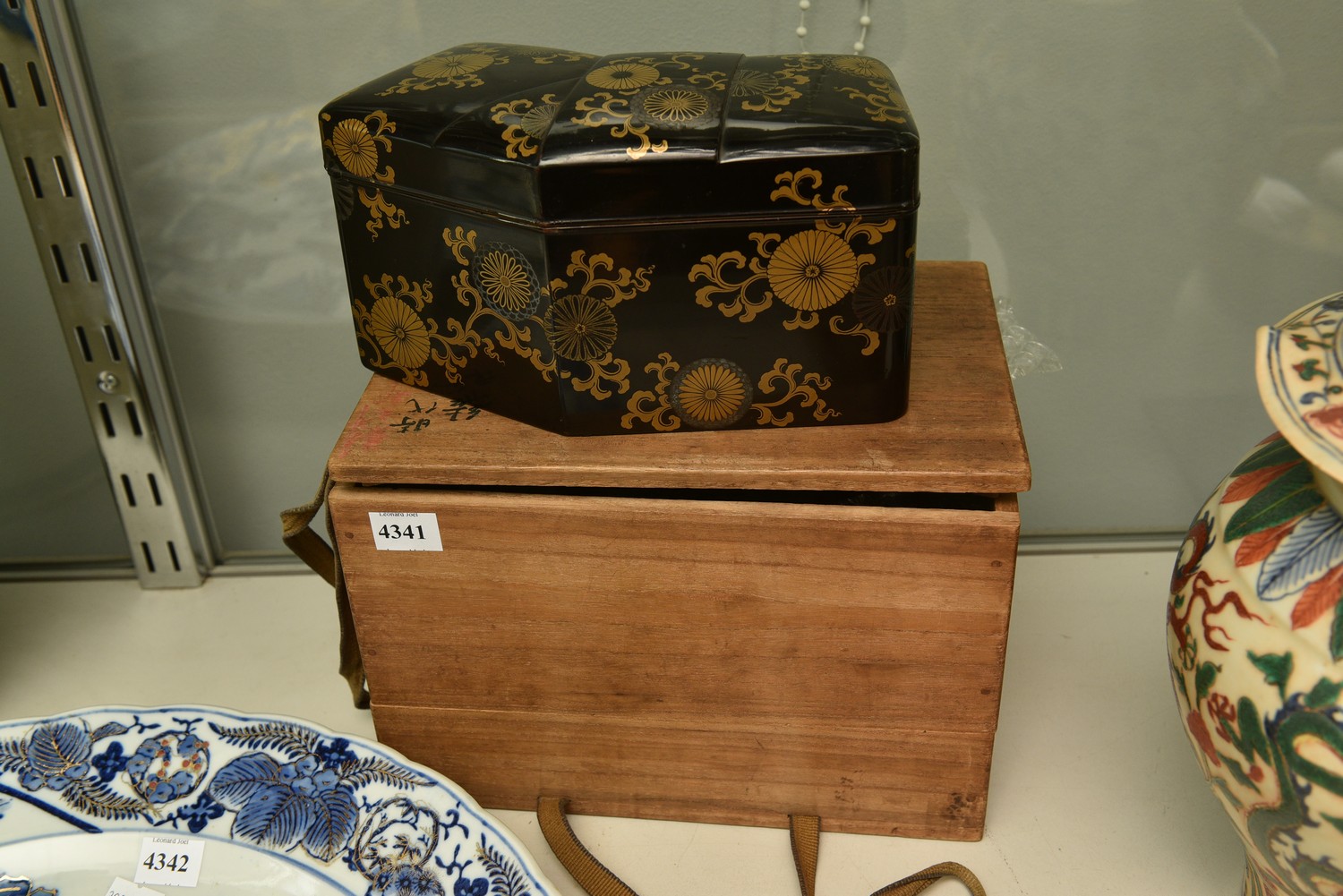 A JAPANESE LACQUERED CONTAINER WITH A SIGNED WOODEN BOX, EDO, LEONARD JOEL LOCAL DELIVERY SIZE: SMALL (40 CM D)