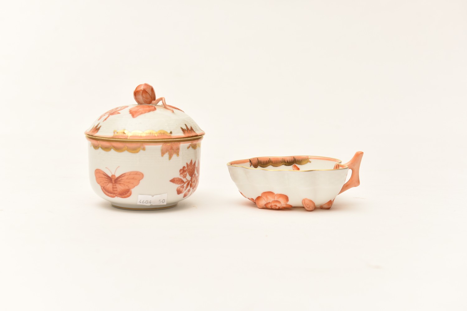 A HEREND PORCELAIN LIDDED BOX TOGETHER WITH DISH (9 CM H), LEONARD JOEL LOCAL DELIVERY SIZE: SMALL