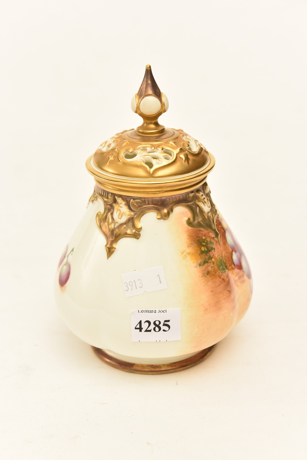 A ROYAL WORCESTER POT POURRI VASE, SIGNED, LEONARD JOEL LOCAL DELIVERY SIZE: SMALL (16.5 CM H)
