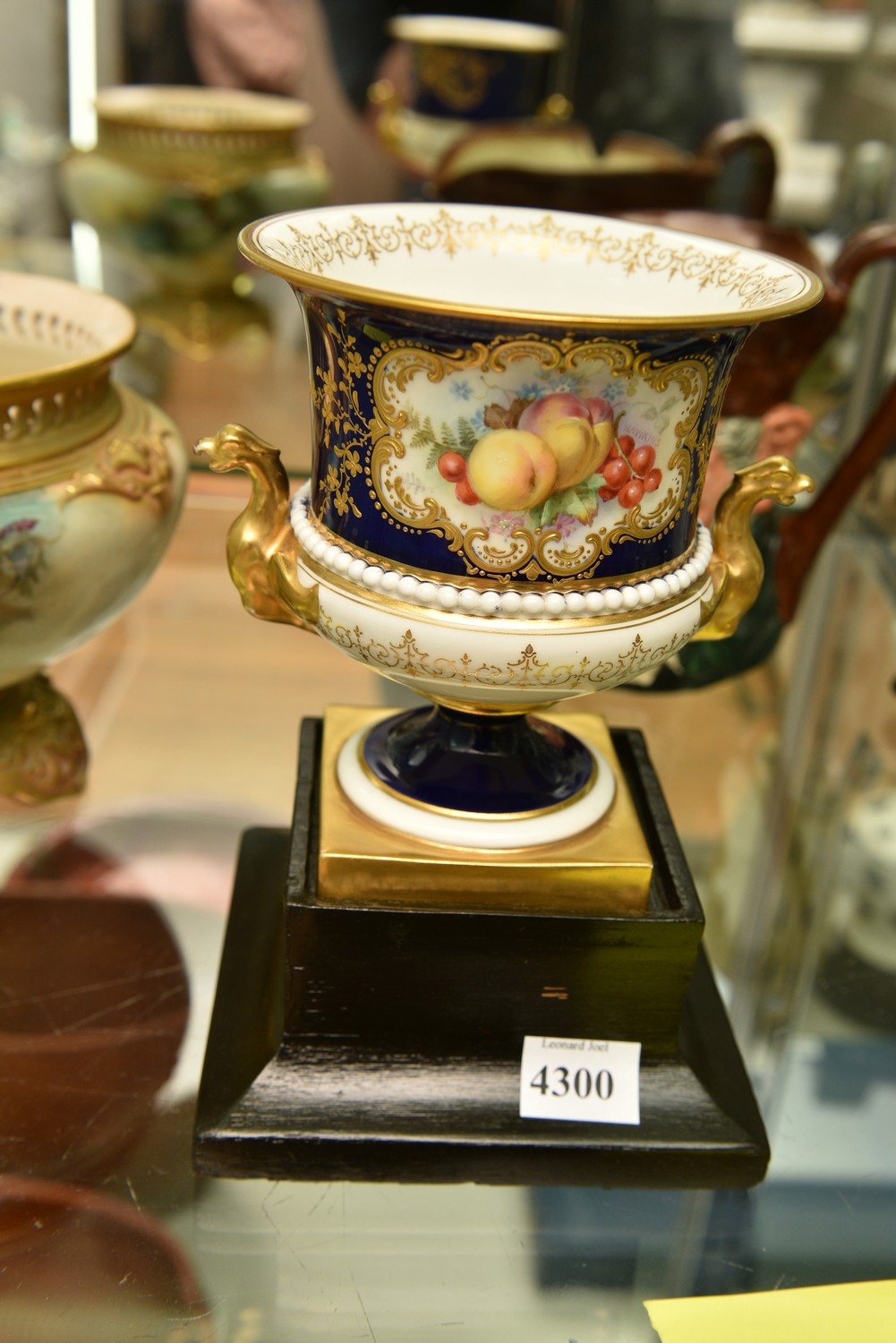A ROYAL WORCESTER URN, SIGNED HAWKINS (WITH LATER STAND), LEONARD JOEL LOCAL DELIVERY SIZE: SMALL (18.5 CM H)