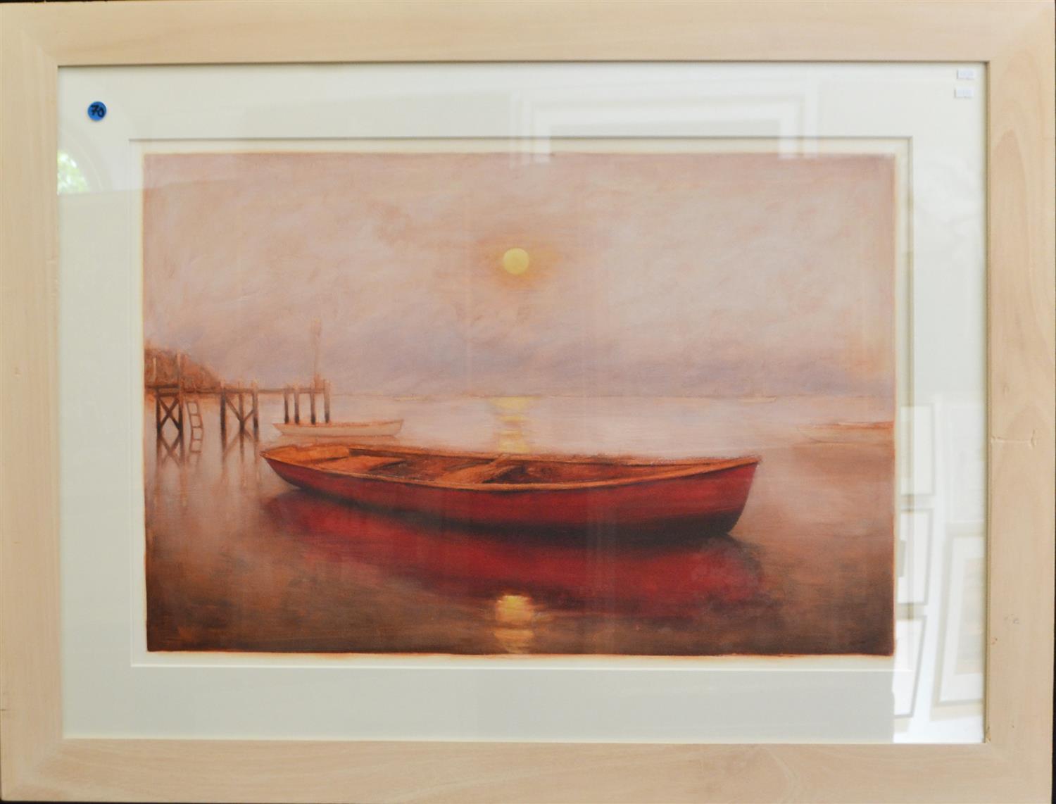 SIGNED WILLIAMS, RED BOAT, ACRYLIC ON PAPER, 62 X 92CM, CONDITION: VERY GOOD