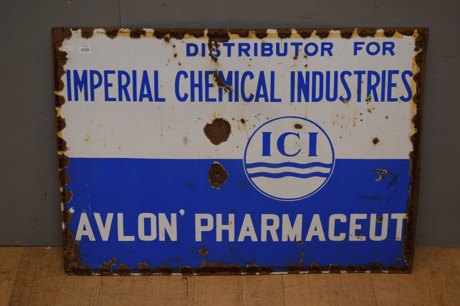 LARGE 1940S IMPERIAL CHEMICAL INDUSTRIES ICI AVALON PHARMACEUT ENAMEL SIGN (62H x 83W CM) (LEONARD JOEL DELIVERY SIZE: MEDIUM)