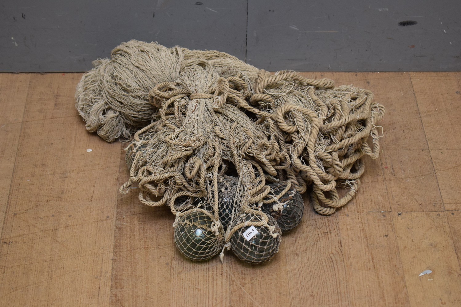1930S NATURAL FIBRE FISHING NET WITH 10 GLASS FISHING NET FLOATS - PERFECT FOR DISPLAY PURPOSES (LEONARD JOEL DELIVERY SIZE: SMALL)