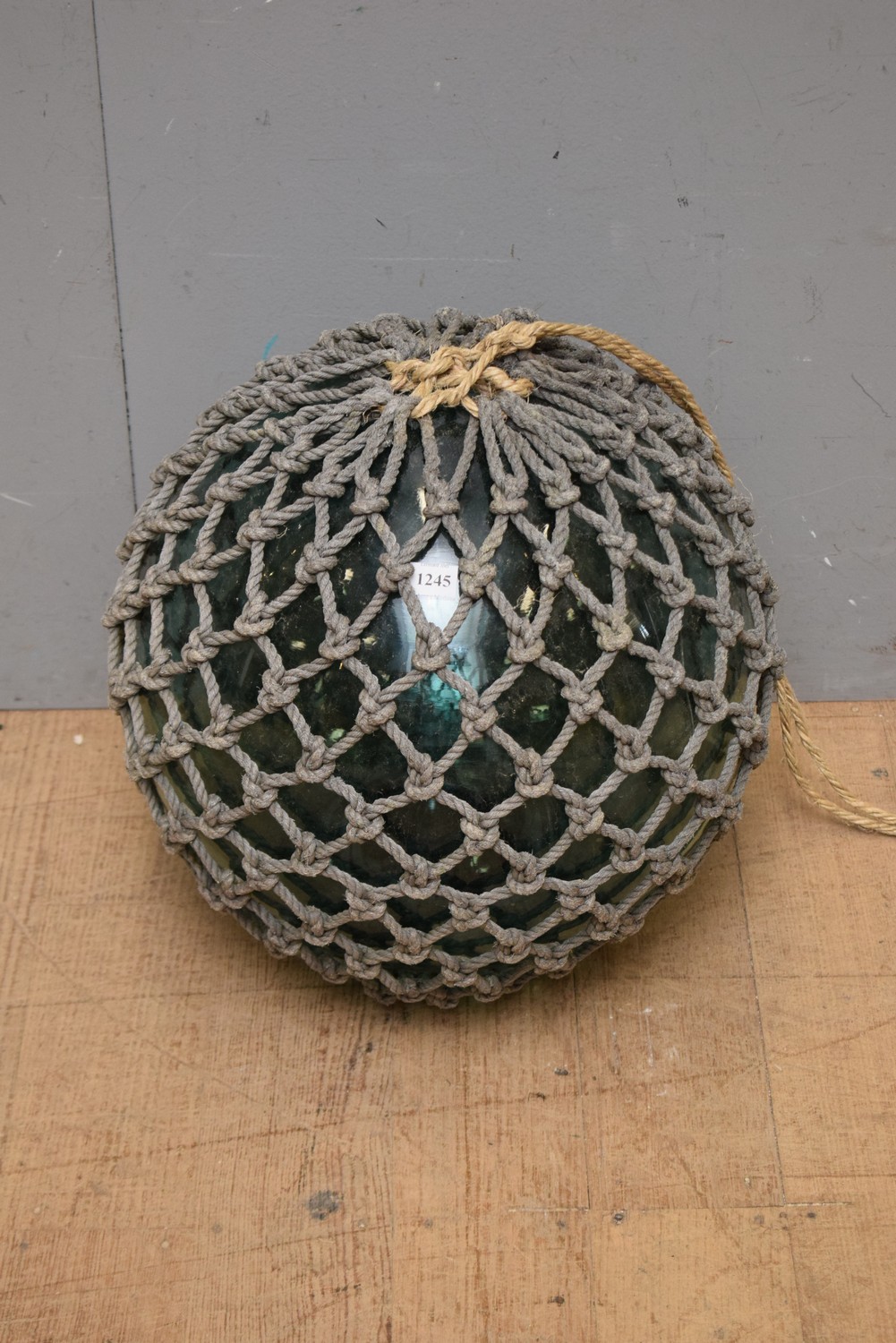 LARGE 1920S GREEN GLASS ROPE BOUND FISHING FLOAT / SHIP BUOY (40D CM) (LEONARD JOEL DELIVERY SIZE: SMALL)