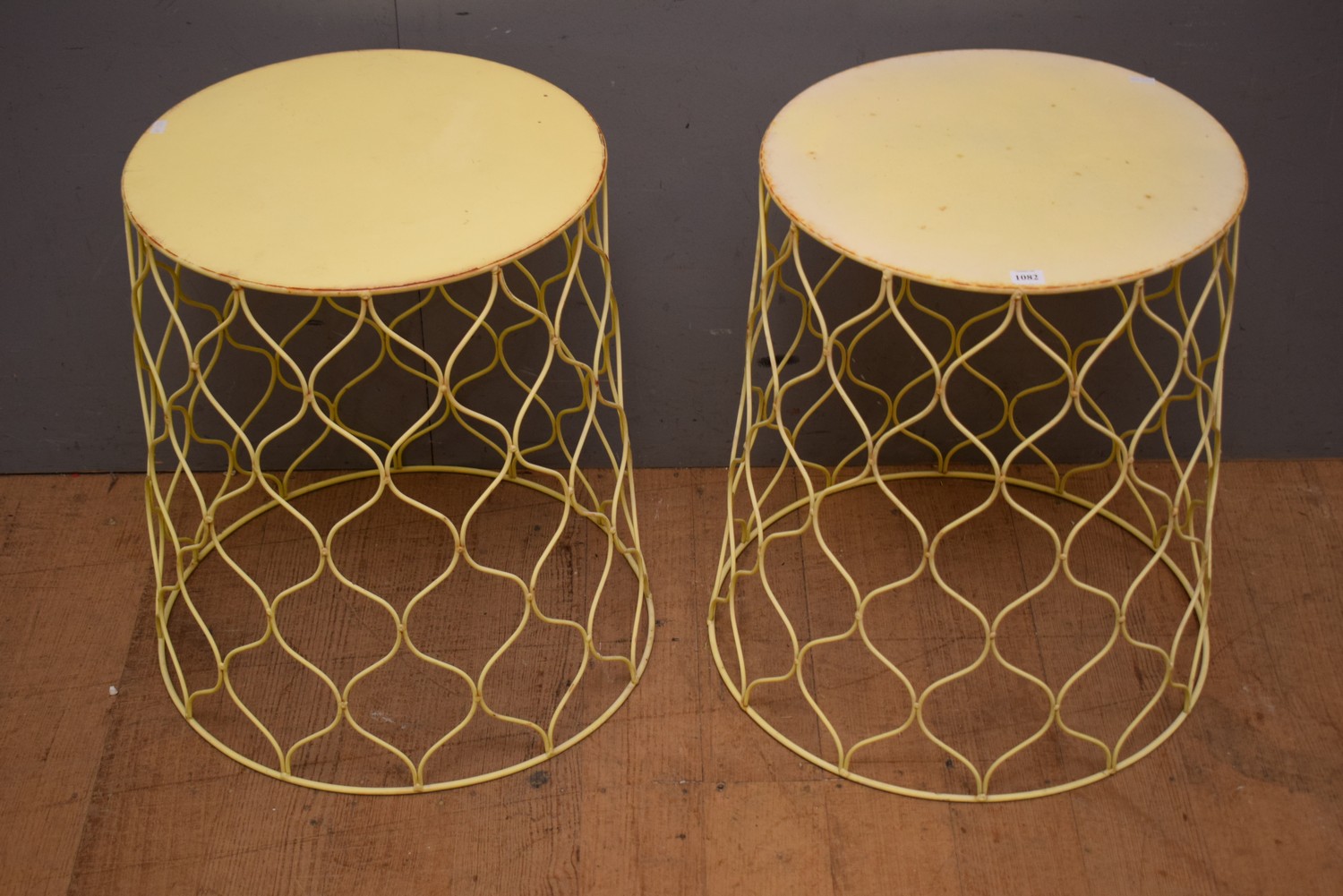PAIR OF VINTAGE RETRO PAINTED PALE YELLOW METAL STOOLS / SIDETABLES (50H x 48D CM) (LEONARD JOEL DELIVERY SIZE: MEDIUM)