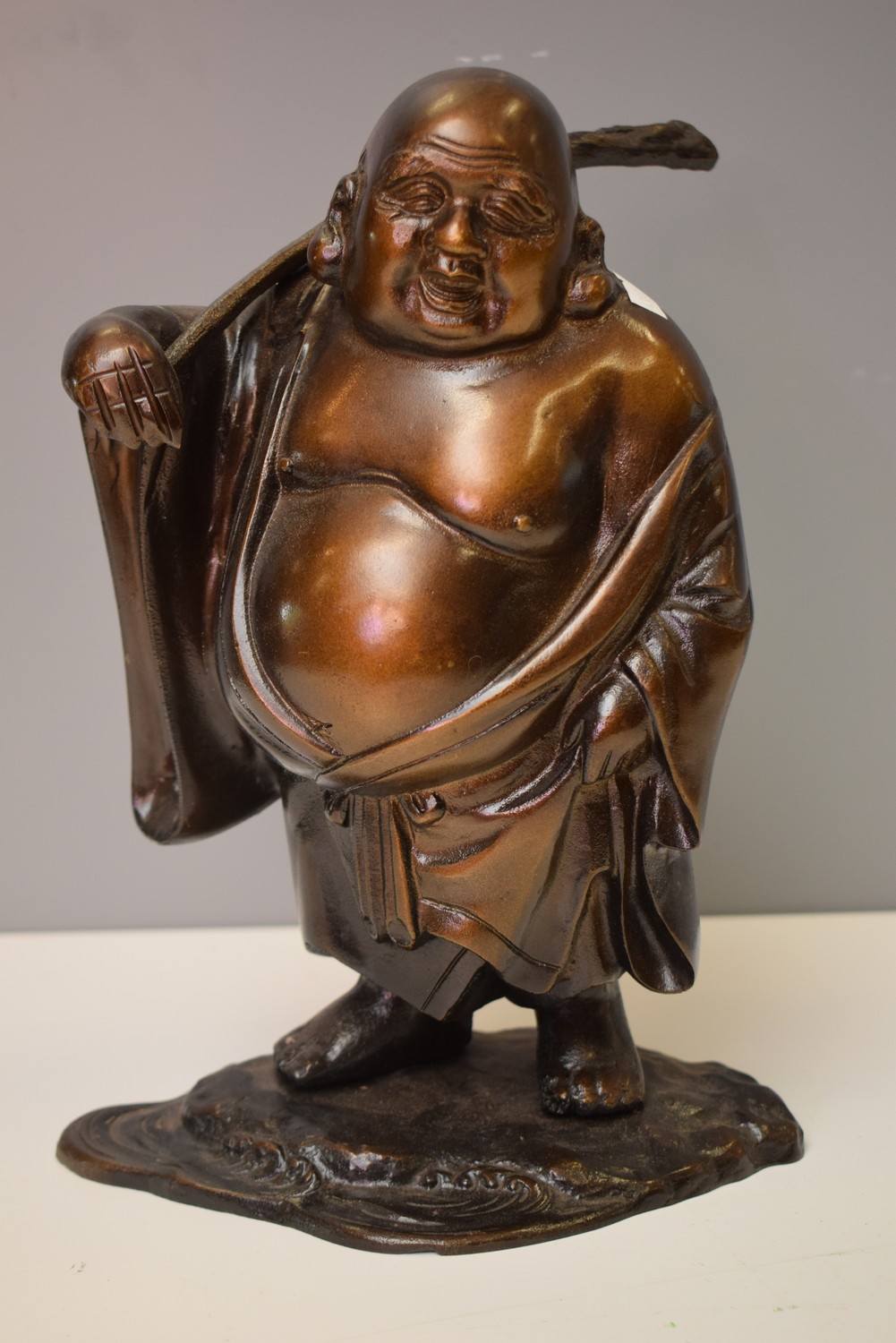A BRONZED CAST IRON ORINETAL HAPPY GOD BUDDHA FIGURE (H30 CM) (LEONARD JOEL DELIVERY SIZE: SMALL)