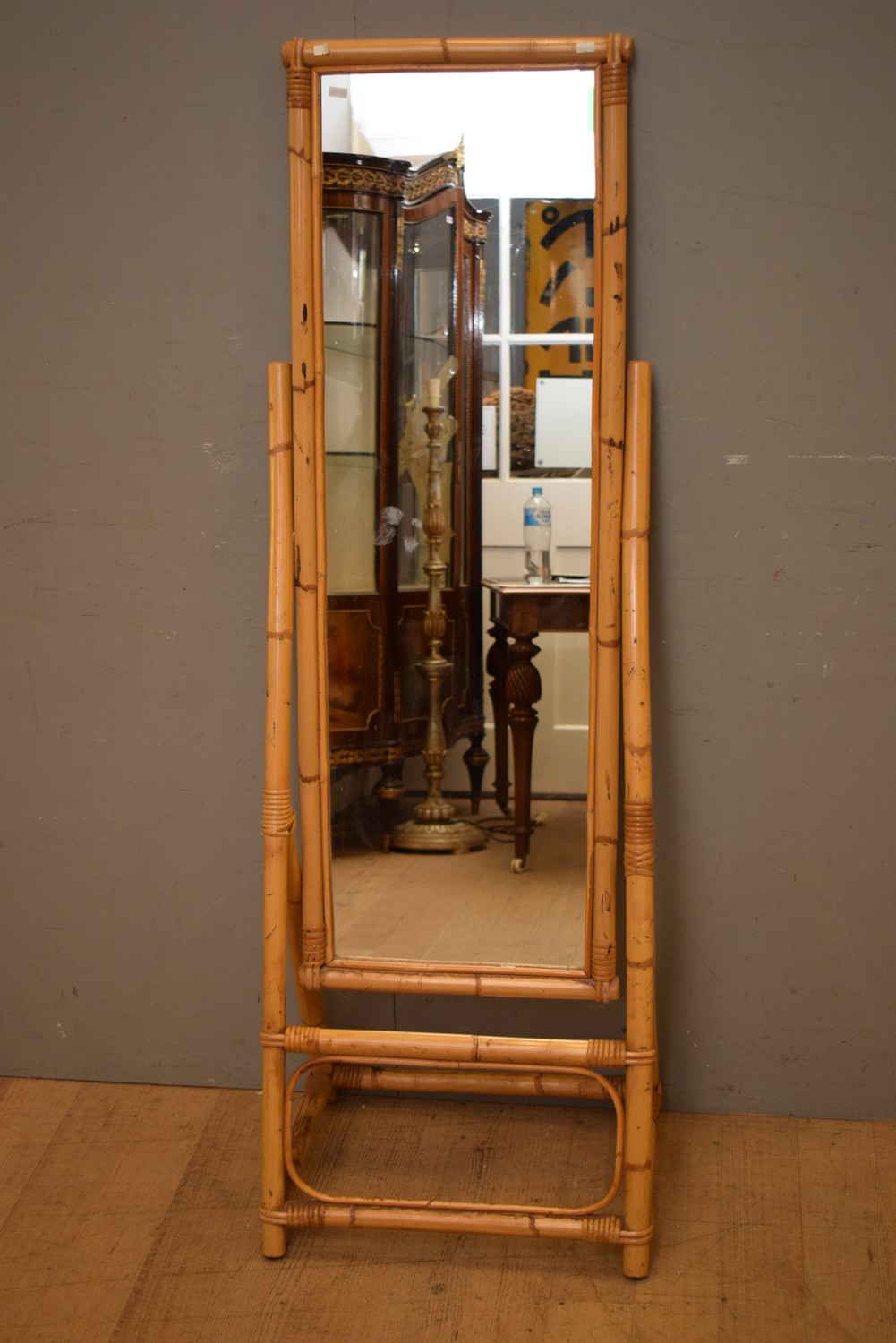 SUPER RETRO 1950S HEAVY CANE CHEVAL MIRROR (153H x 52W x 41D CM) (LEONARD JOEL DELIVERY SIZE: LARGE)