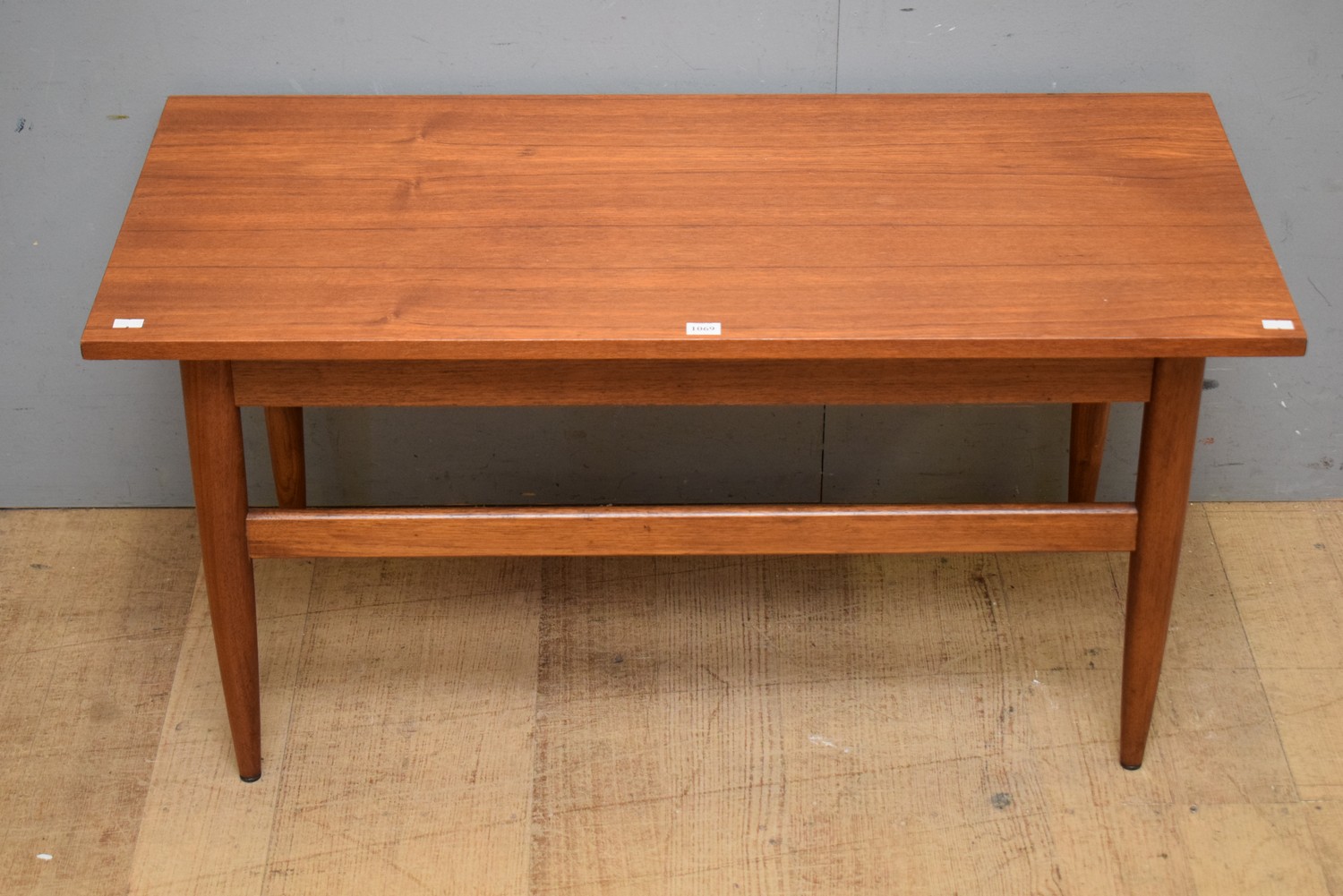 AUSTRALIAN MADE SOLID TEAK RETRO COFFEE TABLE WITH BULLET LEGS (45H x 92W x 43D CM) (LEONARD JOEL DELIVERY SIZE: MEDIUM)