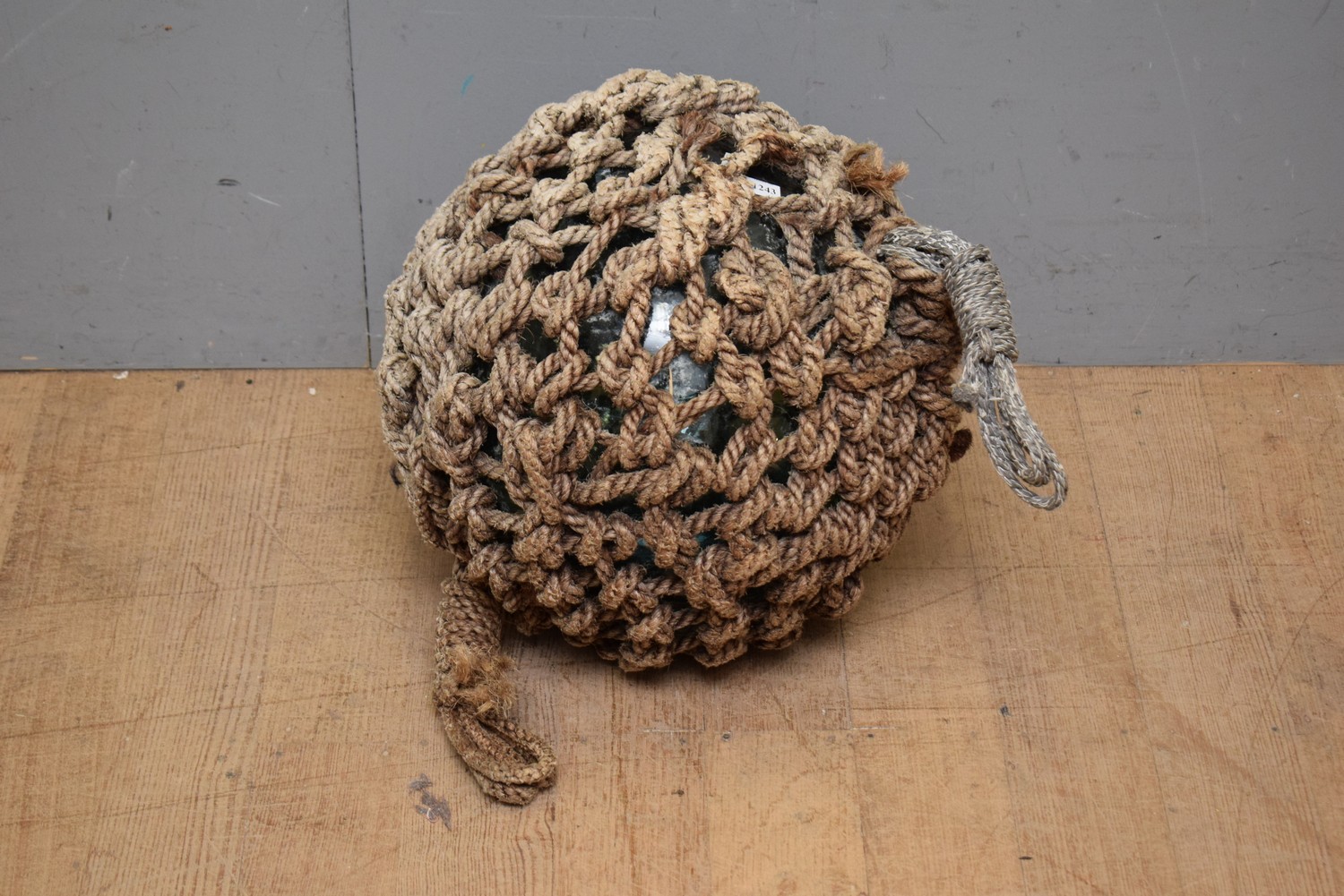 1900S GREEN GLASS NATURAL FIBRE COVERED SHIPS FLOAT / FISHING BUOY (45D CM) (LEONARD JOEL DELIVERY SIZE: SMALL)