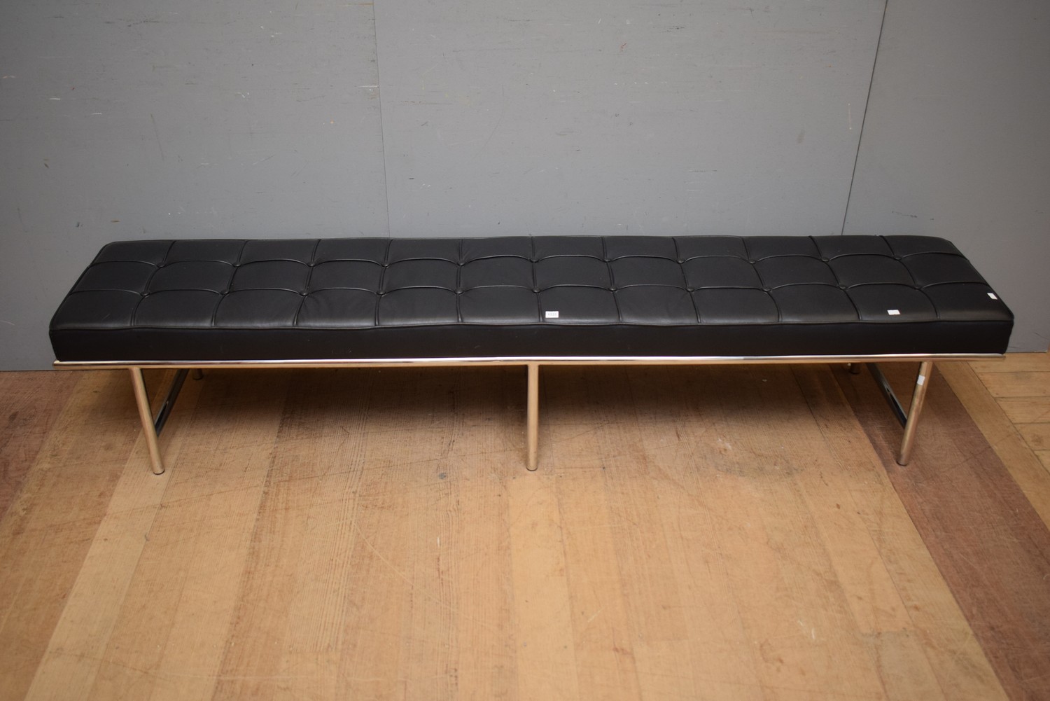 A RETRO LEATHER AND CHROME RECTANGULAR SEAT (40H x 202W x 42D CM) (LEONARD JOEL DELIVERY SIZE: LARGE)