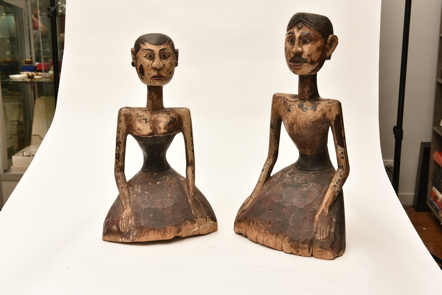 TWO BALINESE WOOD SCULPTURES (62 CM H), LEONARD JOEL LOCAL DELIVERY SIZE: SMALL