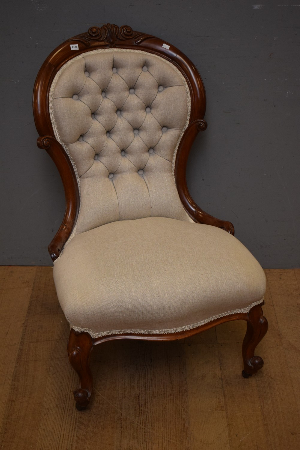A VICTORIAN LADIES CHAIR WITH BUTTON BACK UPHOLSTERY (93H x 59W x 74D CM) (LEONARD JOEL DELIVERY SIZE: LARGE)