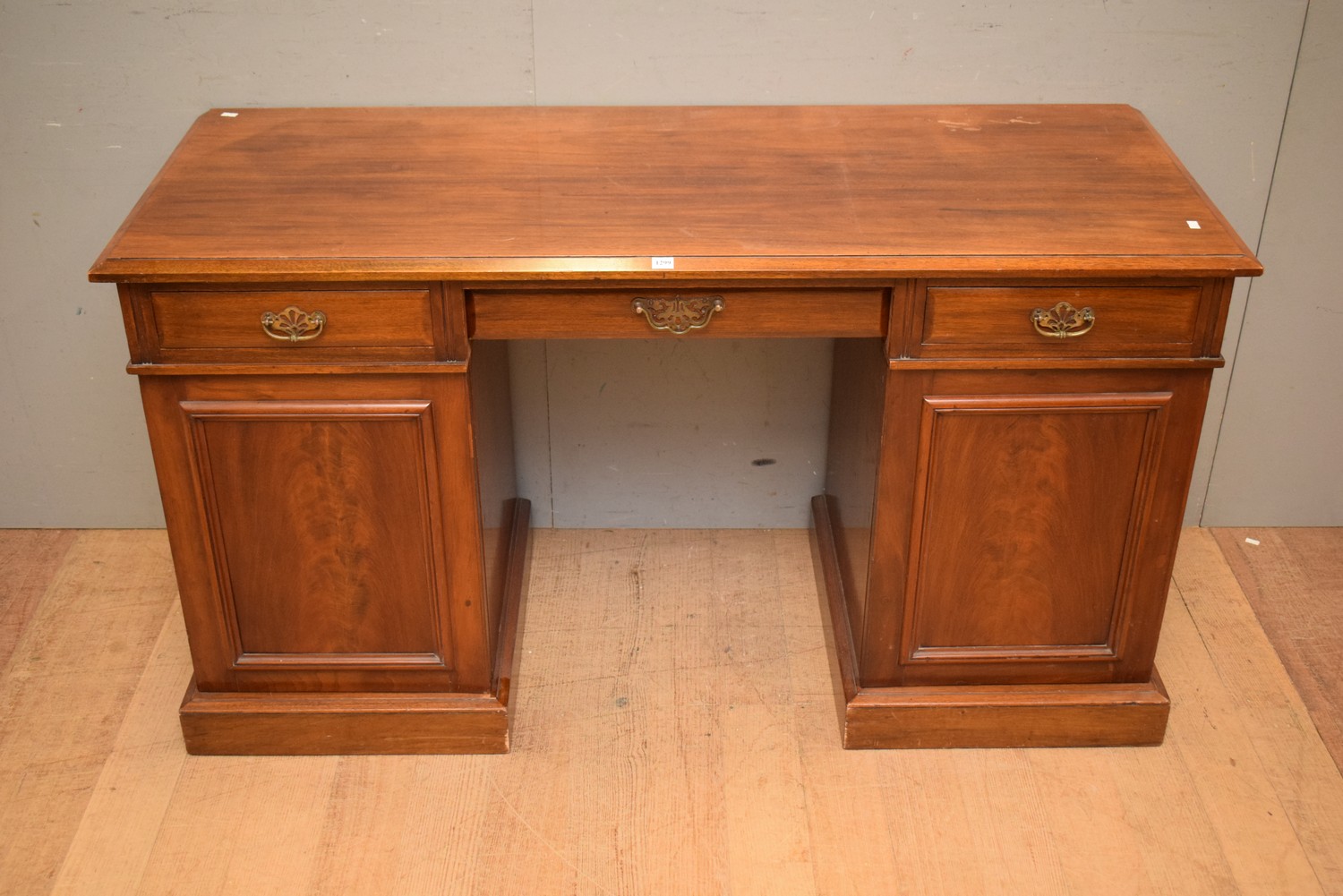 AN ANTIQUE MAHOGANY PEDESTAL DESK (74H x 138W x 55D CM) (LEONARD JOEL DELIVERY SIZE: LARGE)