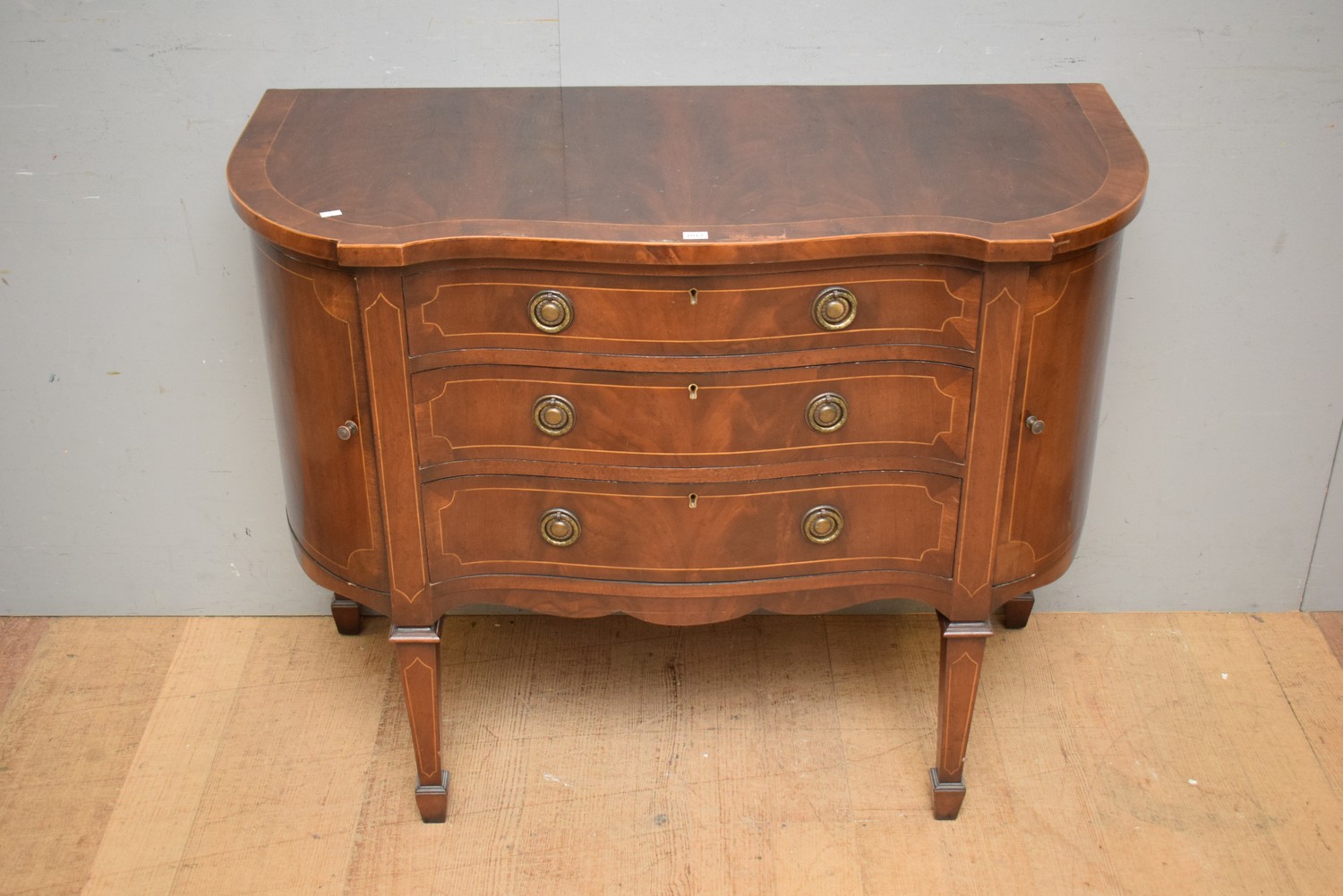 AN ANTIQUE REGENCY SERPENTINE FRONTED THREE DRAWER CONSOLE (83H x 107W x 49D CM) (LEONARD JOEL DELIVERY SIZE: LARGE)