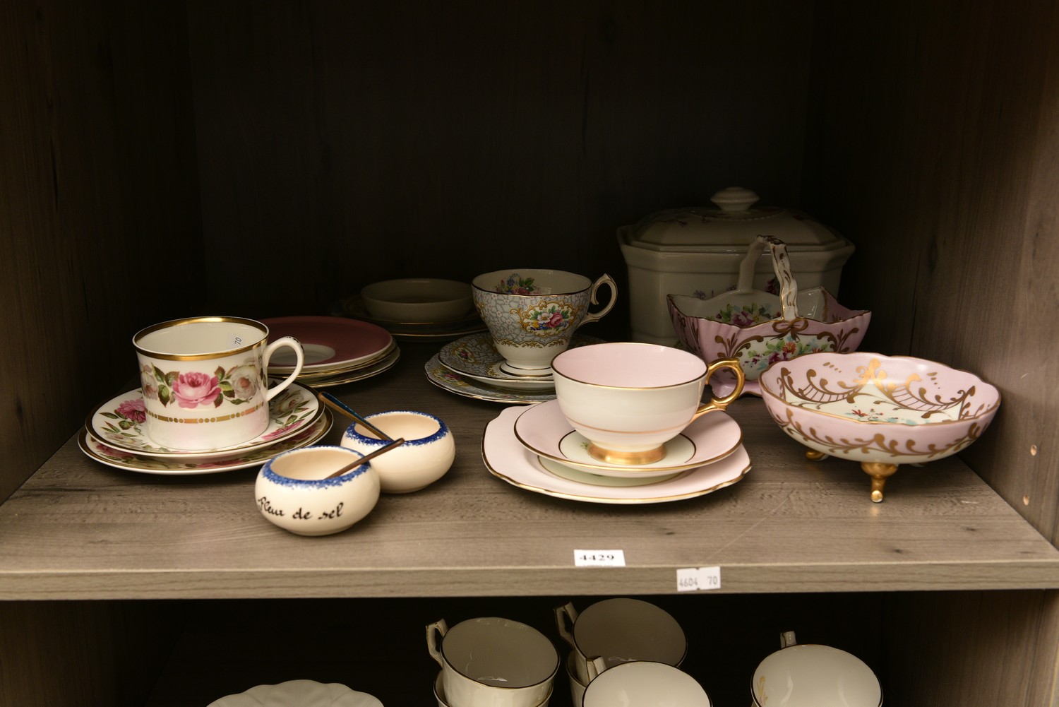 A SHELF OF ASSORTED PORCELAIN, LEONARD JOEL LOCAL DELIVERY SIZE: MEDIUM (20 CM W)