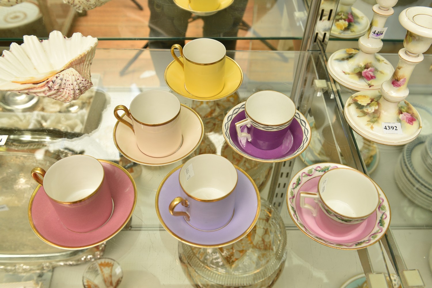 A GROUP OF DEMI TASSE COFFEE CUPS AND SAUCERS INCLUDING RICHARD GINORI, LEONARD JOEL LOCAL DELIVERY SIZE: SMALL (11 CM D)