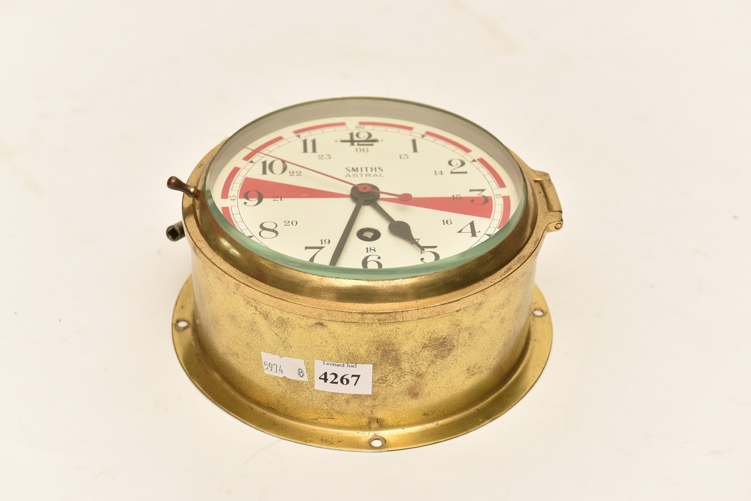 A BRASS CASED SMITH'S ASTRAL SHIP'S CLOCK, WITH KEY, LEONARD JOEL LOCAL DELIVERY SIZE: SMALL (19 CM D)