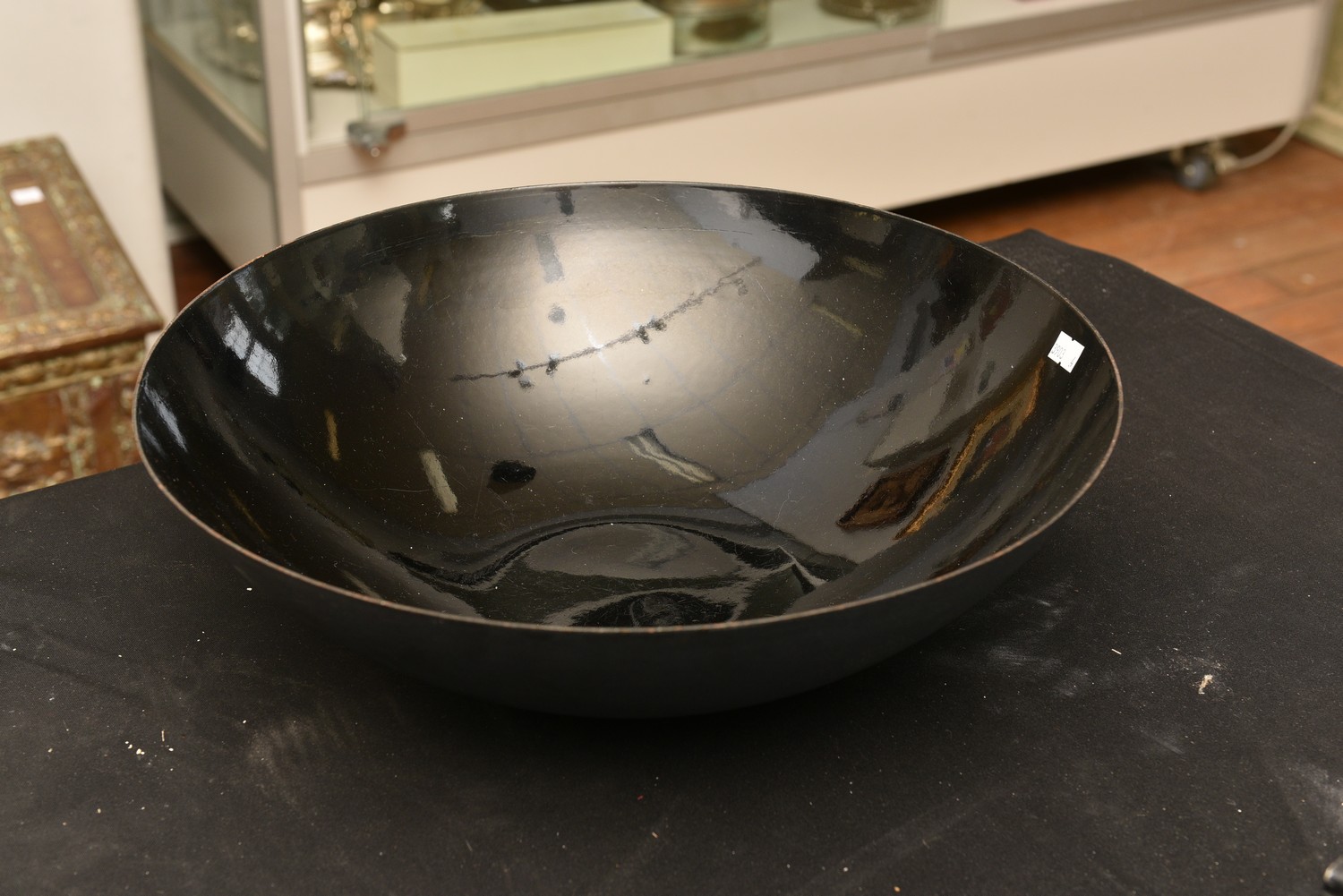 AN EXTRA LARGE KRENIT BOWL WITH MATTE BLACK EXTERIOR AND GLOSSY BLACK INTERIOR BY HERBERT KRENCHEL FOR TORBEN ORSKOV, DENMARK (39 CM DIA), LEONARD JOEL LOCAL DELIVERY SIZE: SMALL