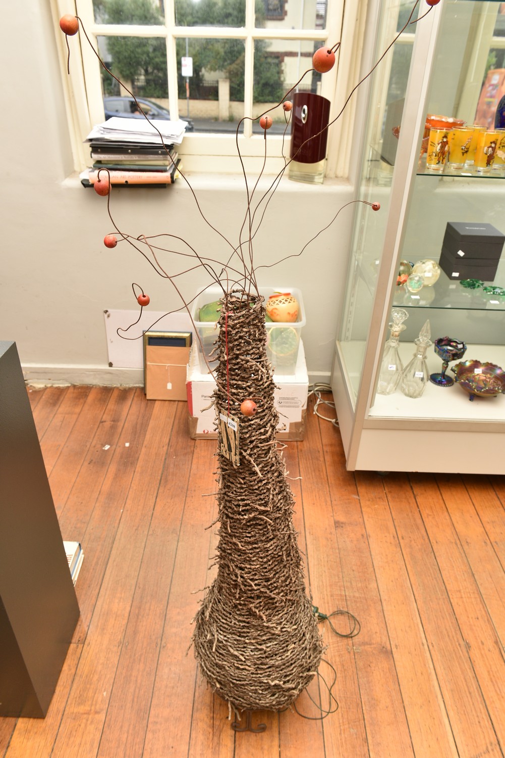 A CHRISTMAS TREE 'QUEENIES CROWN' BY KAREN PIRIE (VICTORIAN BASKET WEAVER) WOVEN TREE WITH LIGHTS, 137 CM H, LEONARD JOEL LOCAL DELIVERY SIZE: MEDIUM