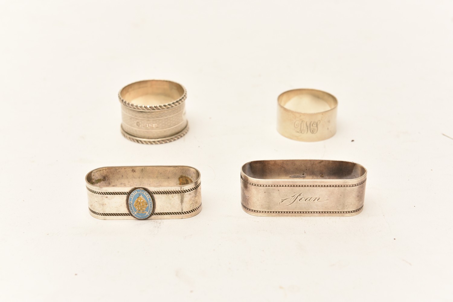 A COLLECTION OF STERLING SILVER NAPKIN RINGS (7 CM W), LEONARD JOEL LOCAL DELIVERY SIZE: SMALL