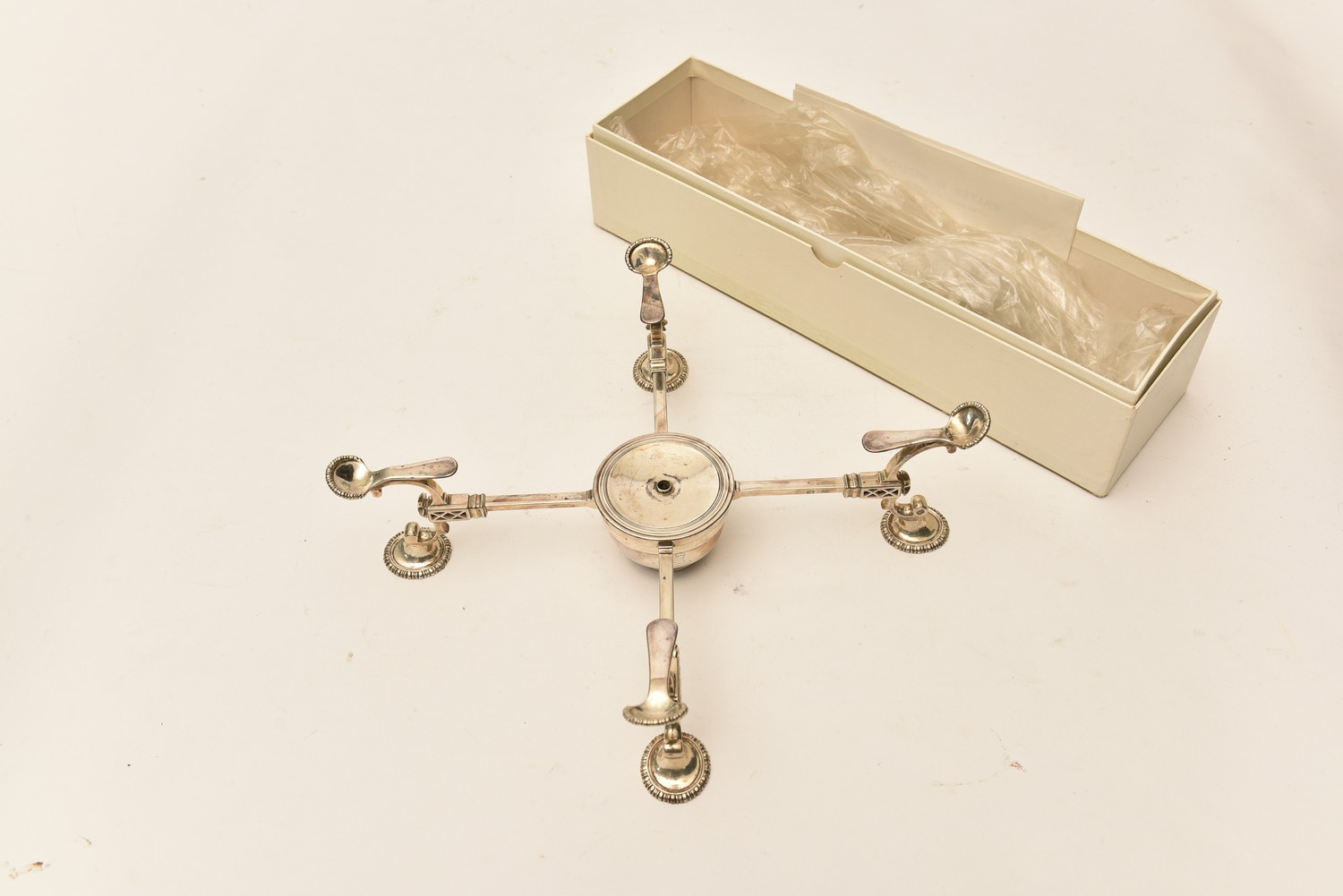 A GEORGIAN STERLING SILVER ADJUSTABLE WARMING STAND WITH BURNER (31 CM W), LEONARD JOEL LOCAL DELIVERY SIZE: SMALL
