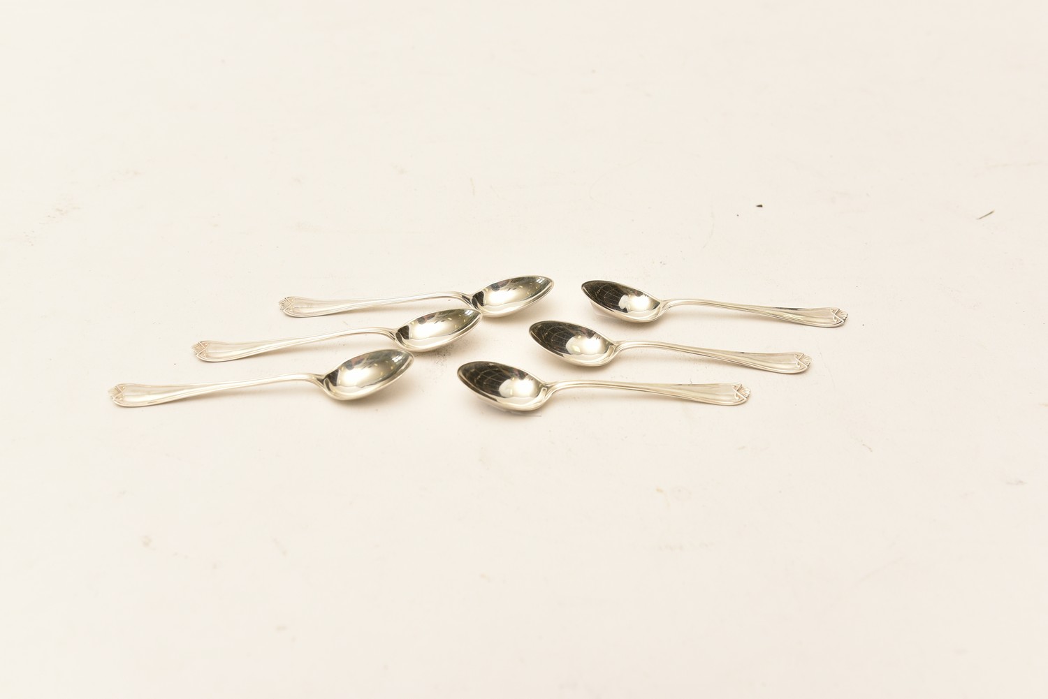 A GROUP OF SIX STERLING SILVER COFFEE SPOONS (10 CM W), LEONARD JOEL LOCAL DELIVERY SIZE: SMALL
