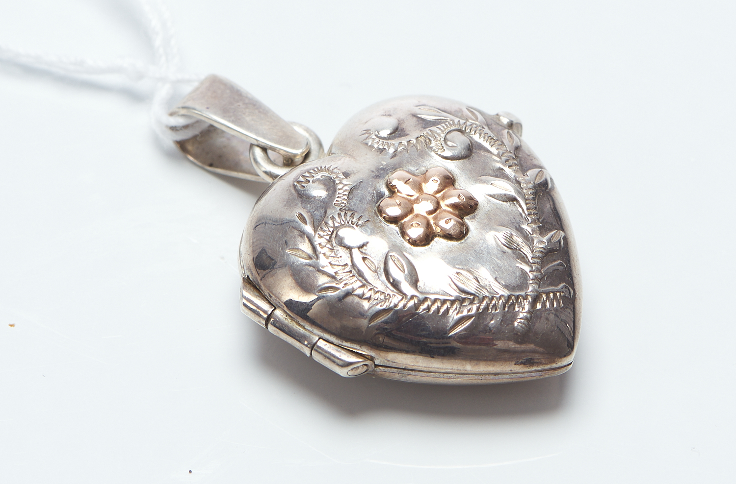 A HEART LOCKET/PENDANT IN STERLING SILVER WITH ROSE GOLD OVERLAY, LENGTH INCLUDING BALE 30MM