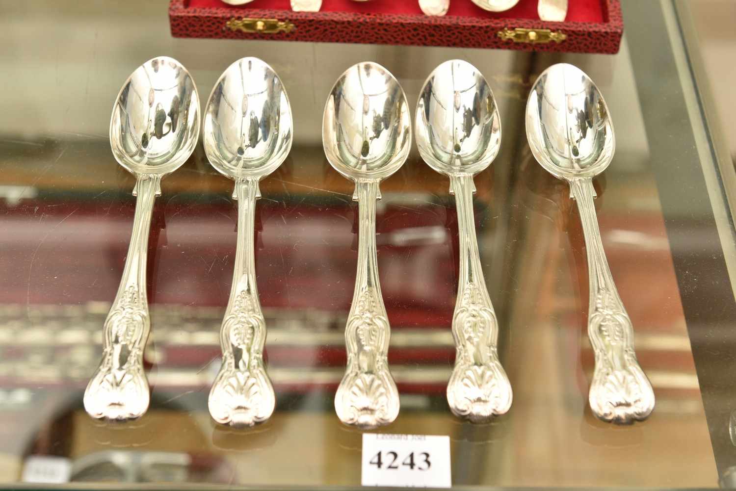 A GROUP OF FIVE STERLING SILVER TEASPOONS, LEONARD JOEL LOCAL DELIVERY SIZE: SMALL
