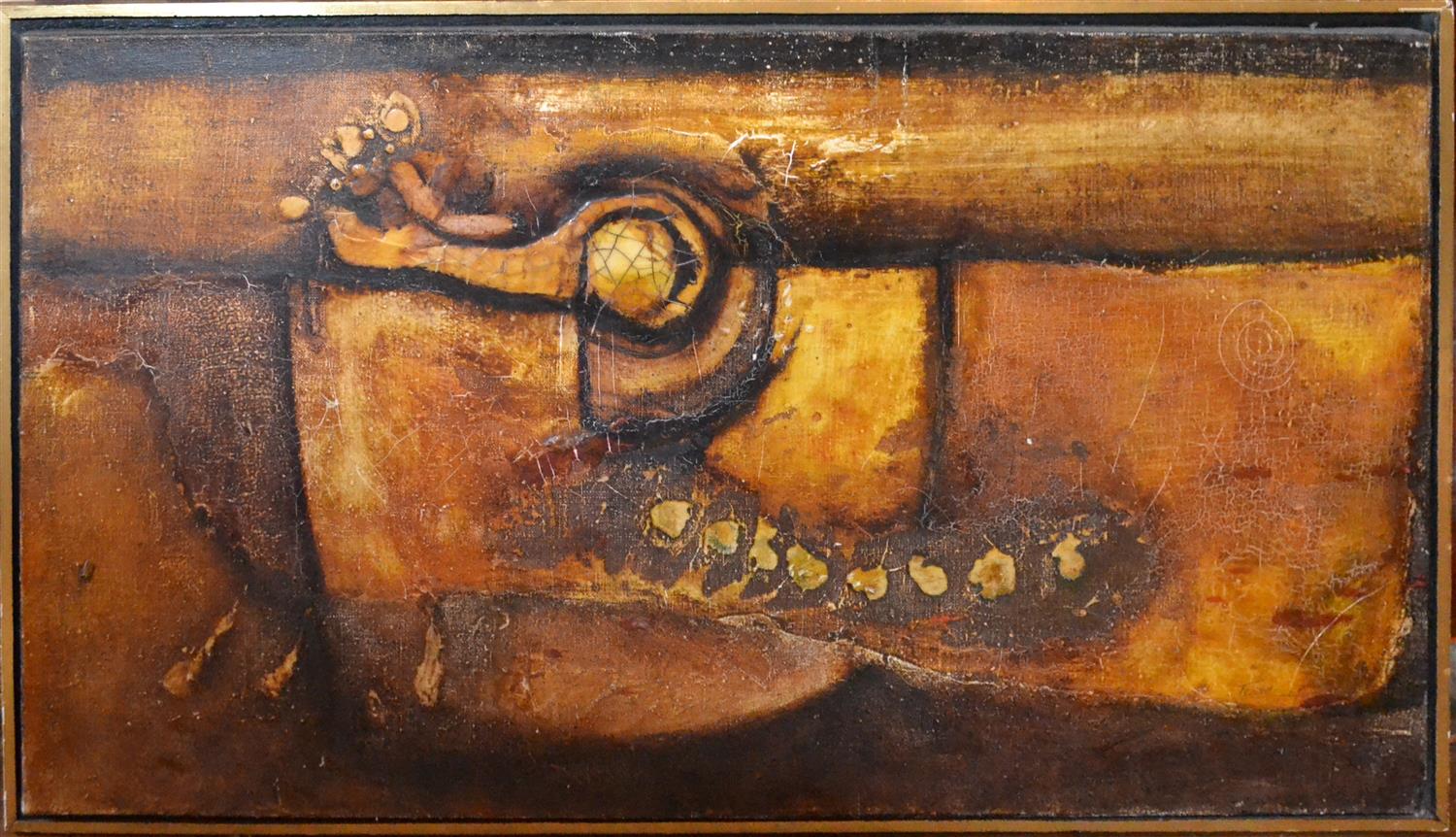TEASDALE, EARTH ABSTRACT 1975, MIXED MEDIA ON CANVAS, 51 X 91CM, LEONARD JOEL DELIVERY SIZE: MEDIUM