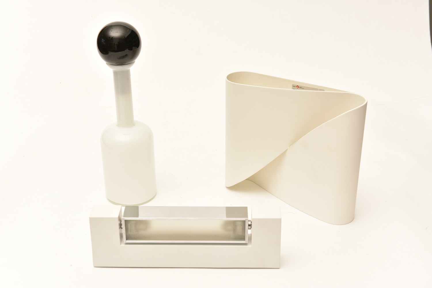 VINTAGE GLASS VESSEL & TWO ITALIAN CASSINA WALL LIGHTS, LEONARD JOEL LOCAL DELIVERY SIZE: SMALL