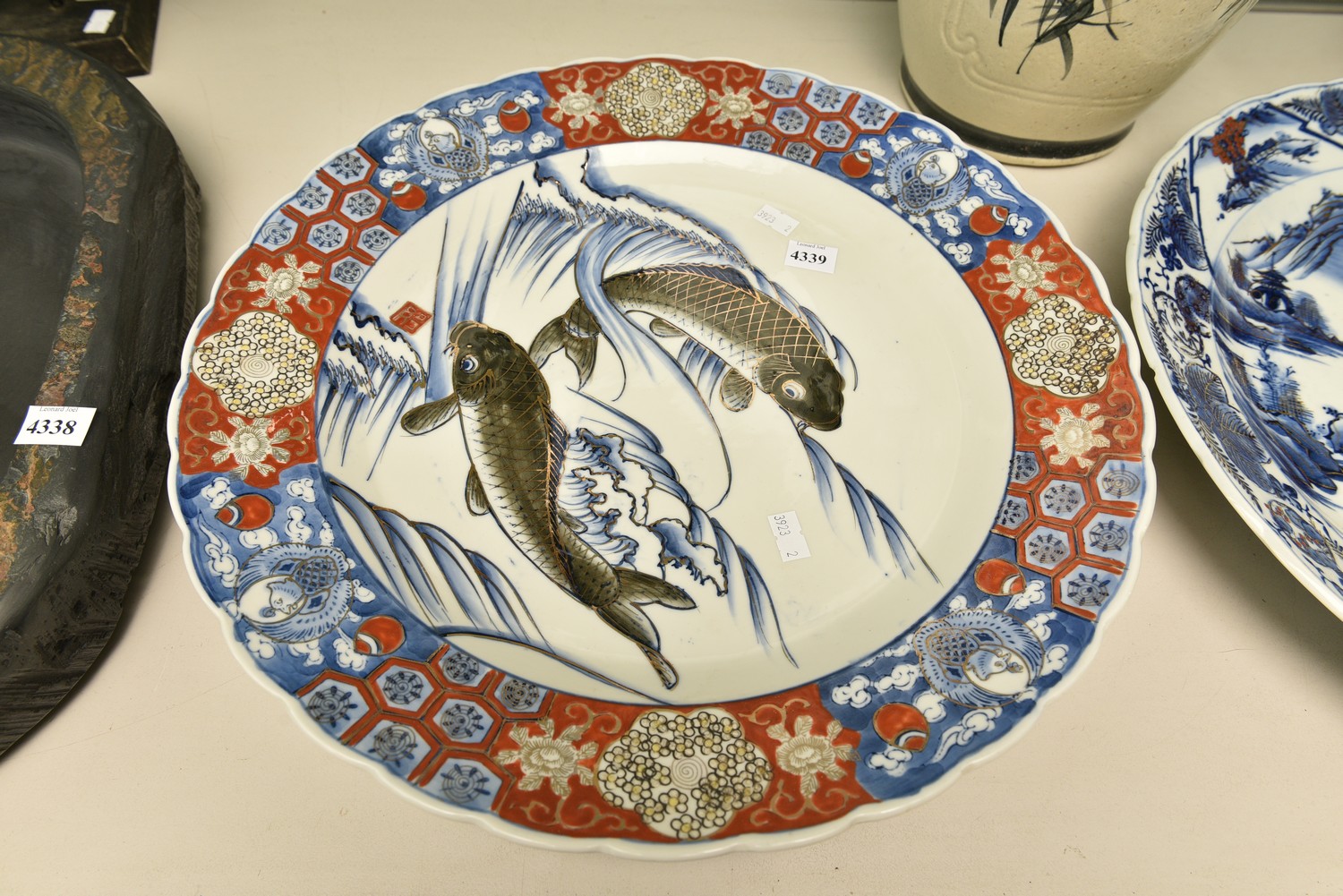 A LARGE JAPANESE CHARGER WITH SCALLOPED BORDER FISH PATTERN, LEONARD JOEL LOCAL DELIVERY SIZE: SMALL (40 CM D)