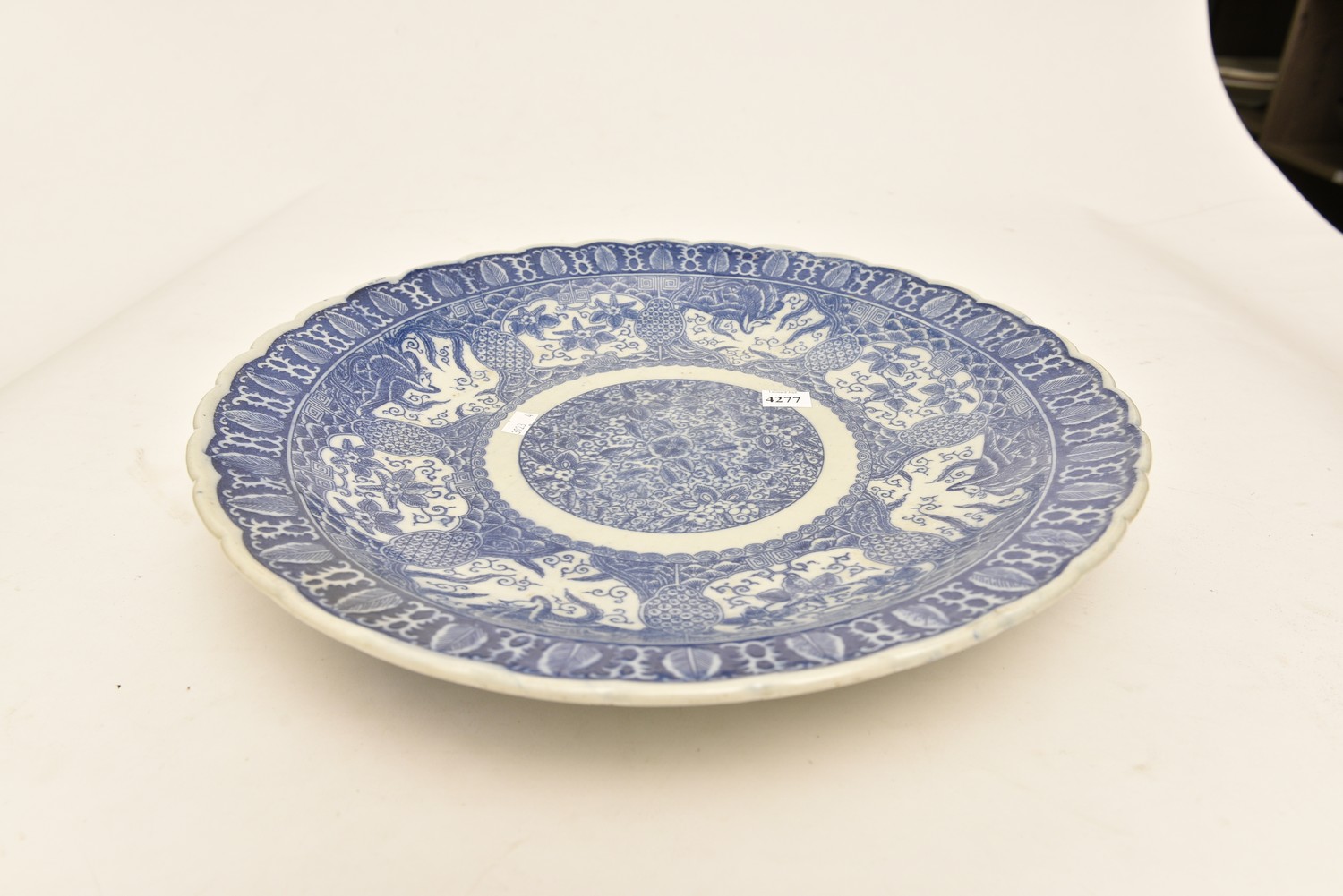 A LARGE JAPANESE CHARGER WITH BLUE FLORAL PATTERN, LEONARD JOEL LOCAL DELIVERY SIZE: SMALL (40 CM D)