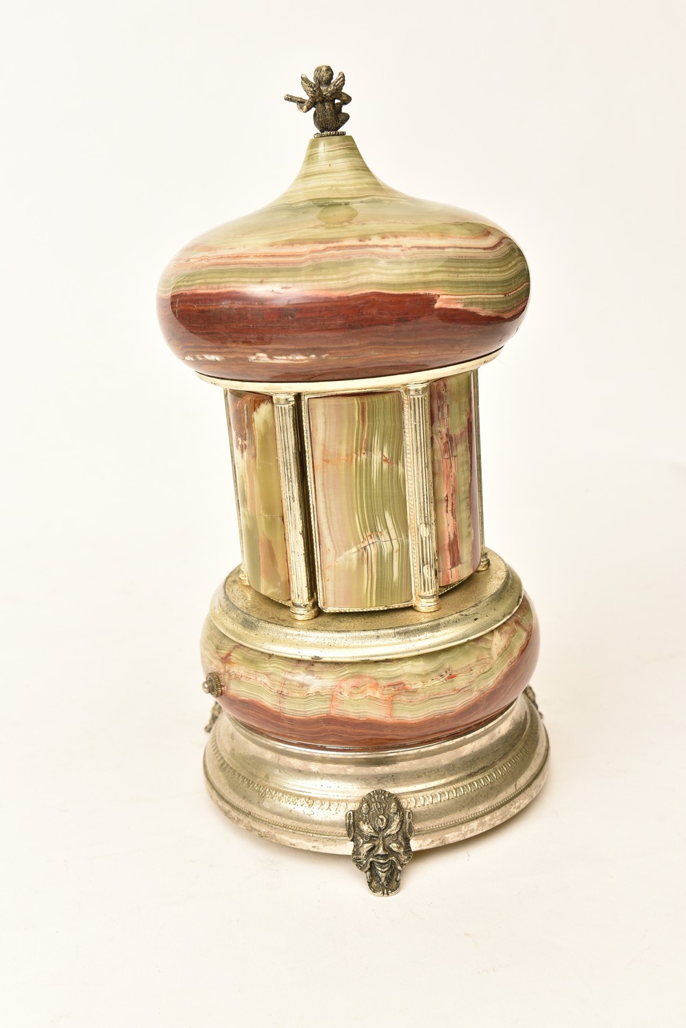 A SWISS REUGE GILT METAL AND ONYX MUSICAL CIGARETTE HOLDER (32 CM H), LEONARD JOEL LOCAL DELIVERY SIZE: SMALL