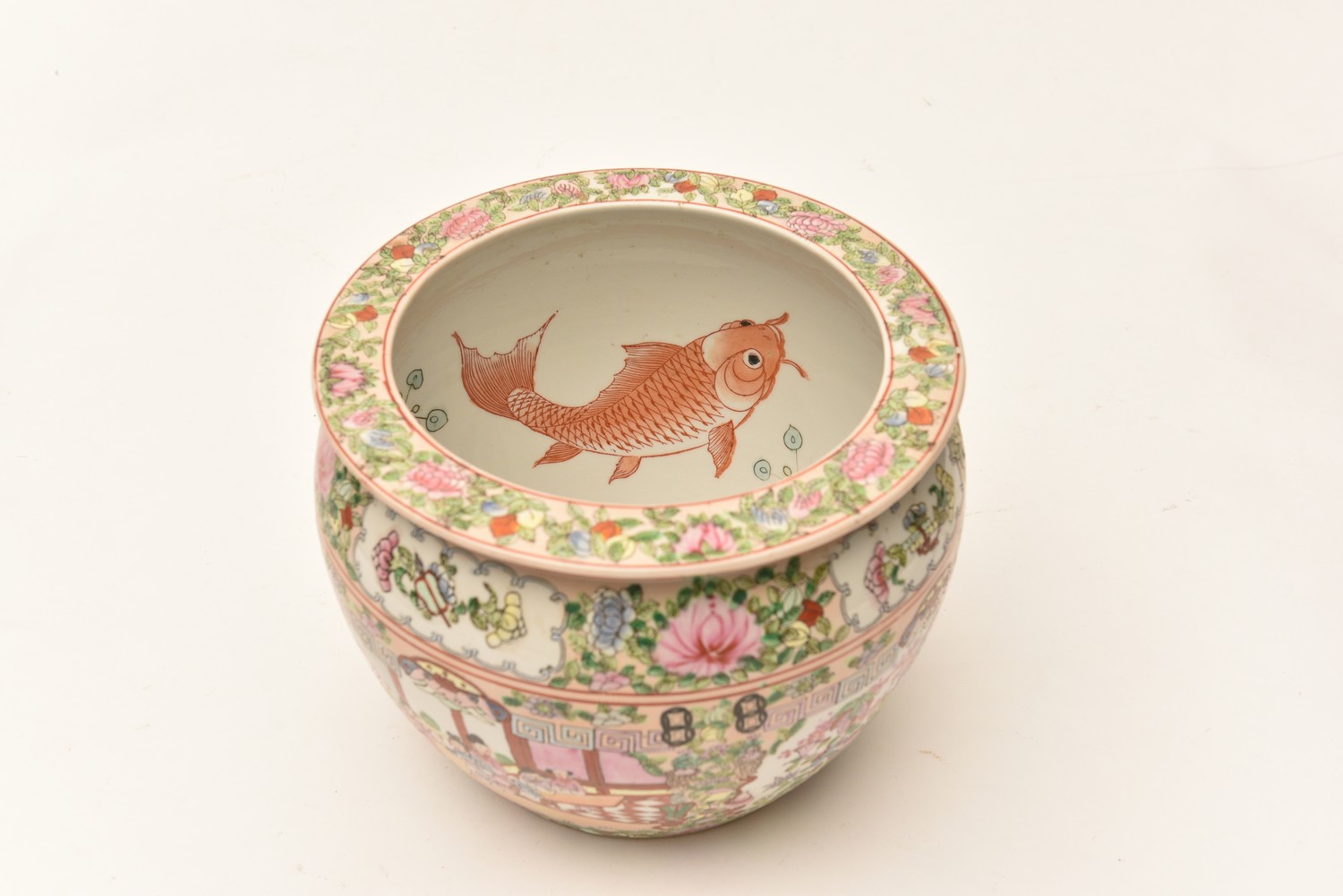 A LARGE CHINESE PORCELAIN FISH BOWL WITH INTERNAL IMAGES (21 CM H), LEONARD JOEL LOCAL DELIVERY SIZE: SMALL