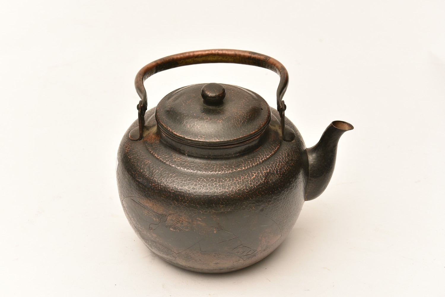 A LARGE CHINESE COPPER HAND BEATEN KETTLE (21 CM D), LEONARD JOEL LOCAL DELIVERY SIZE: SMALL