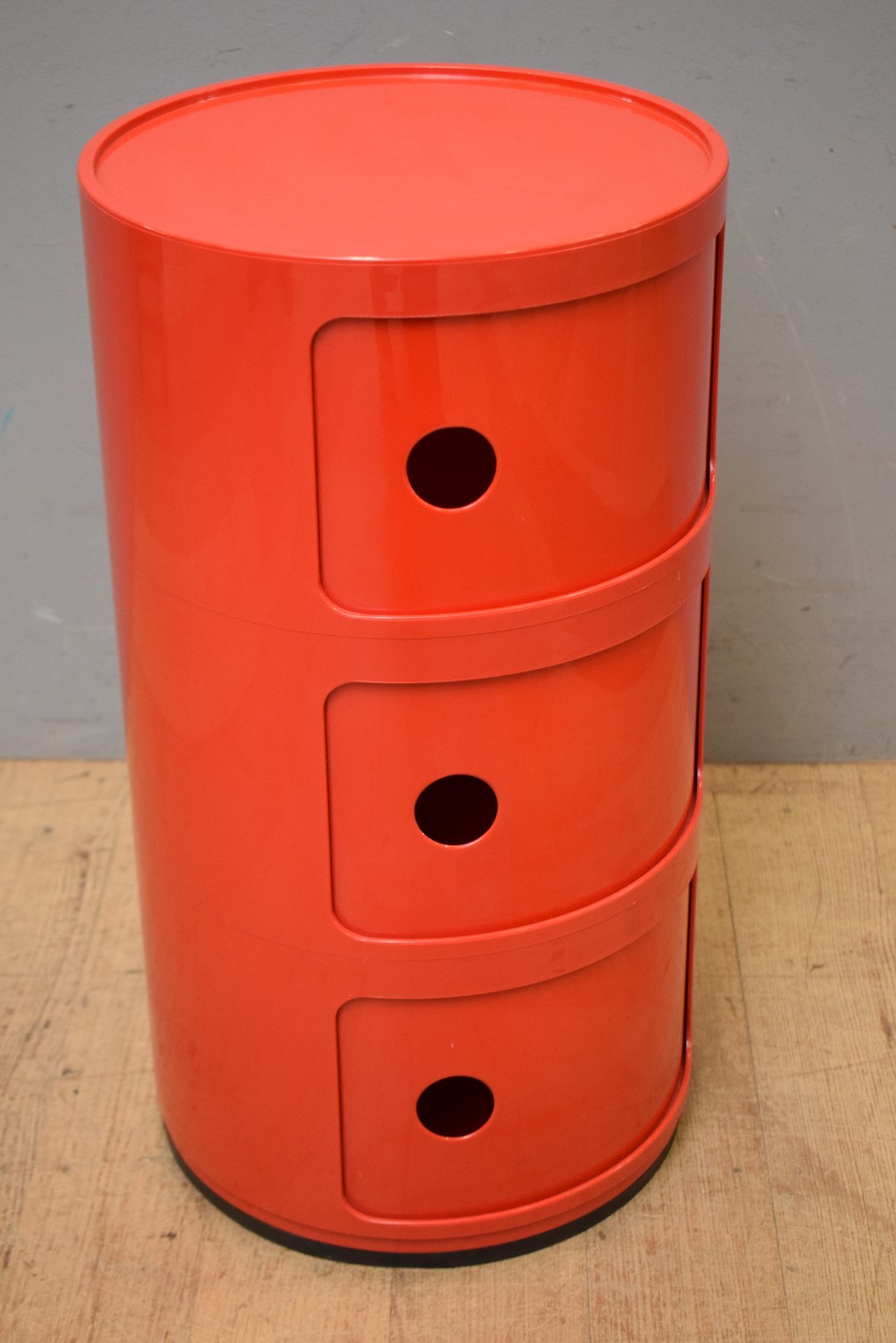 AN ORIGINAL RED THREE SECTION KARTELL BEDSIDE CABINET FULLY SIGNED (H59 X D32 CM) (LEONARD JOEL DELIVERY SIZE: SMALL)
