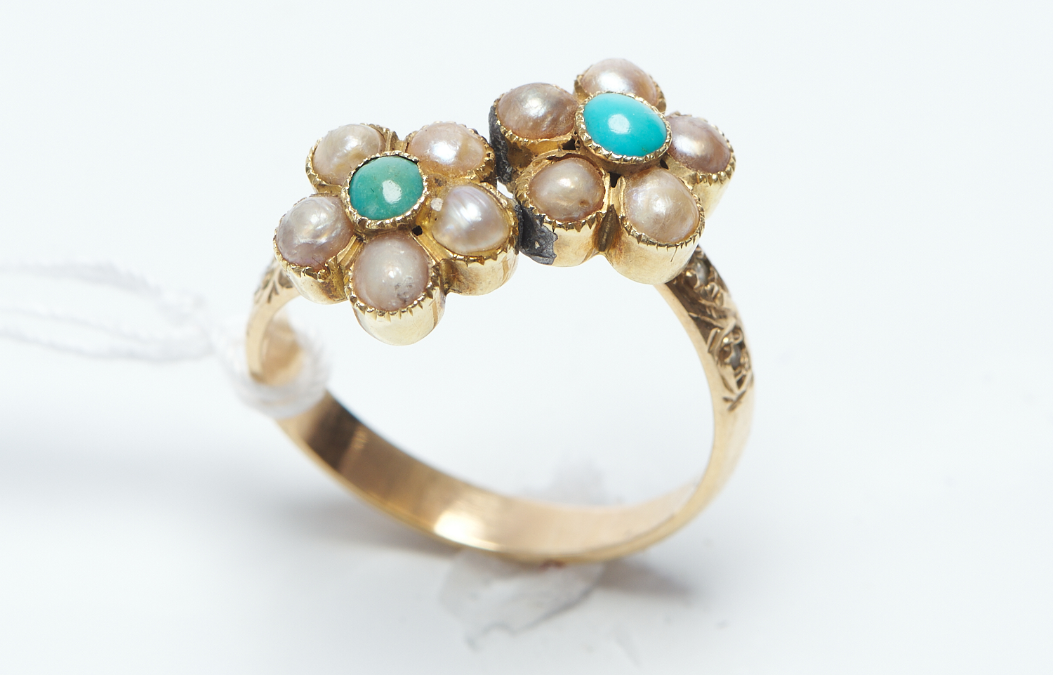 the turquoise beads are in good condition with one bead showing more blue than the other; doesn't appear to have been changed over the years