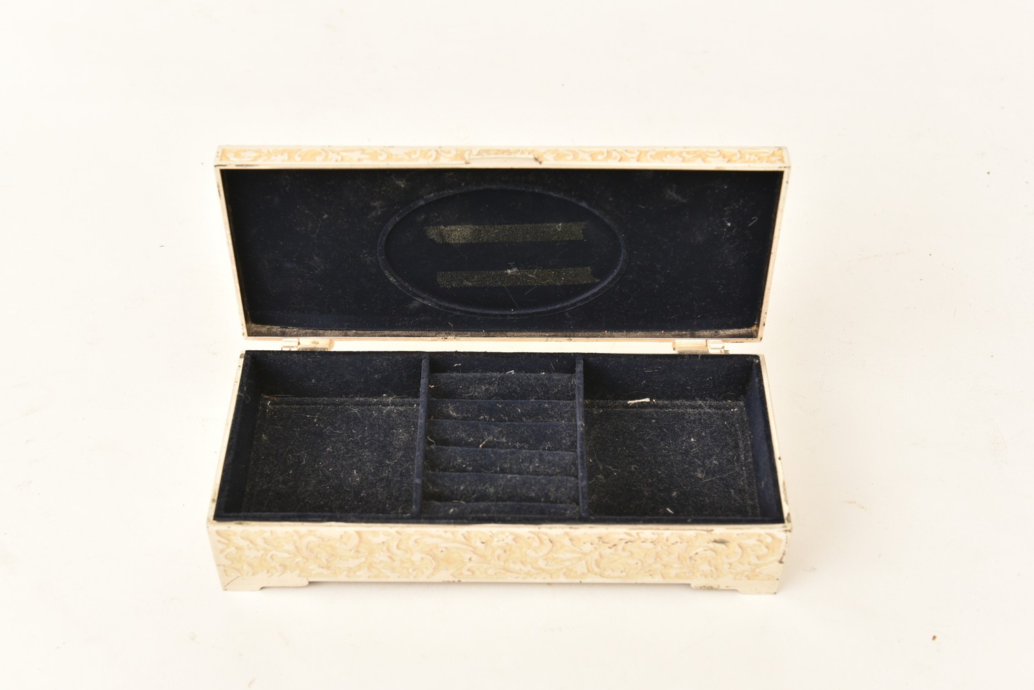 A FOLIATE PATTERNED CAST METAL JEWELLERY BOX, LEONARD JOEL LOCAL DELIVERY SIZE: SMALL