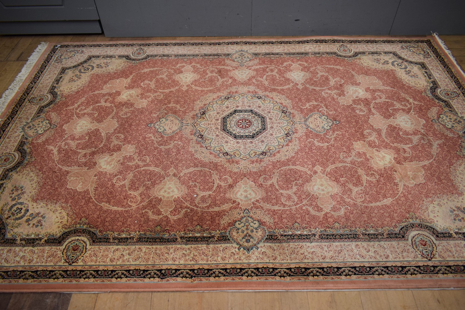 A MACHINE MADE PERSIAN RUG IN PINK AND CREAM TONES A/F (308CM X 198CM) (LEONARD JOEL DELIVERY SIZE: LARGE)