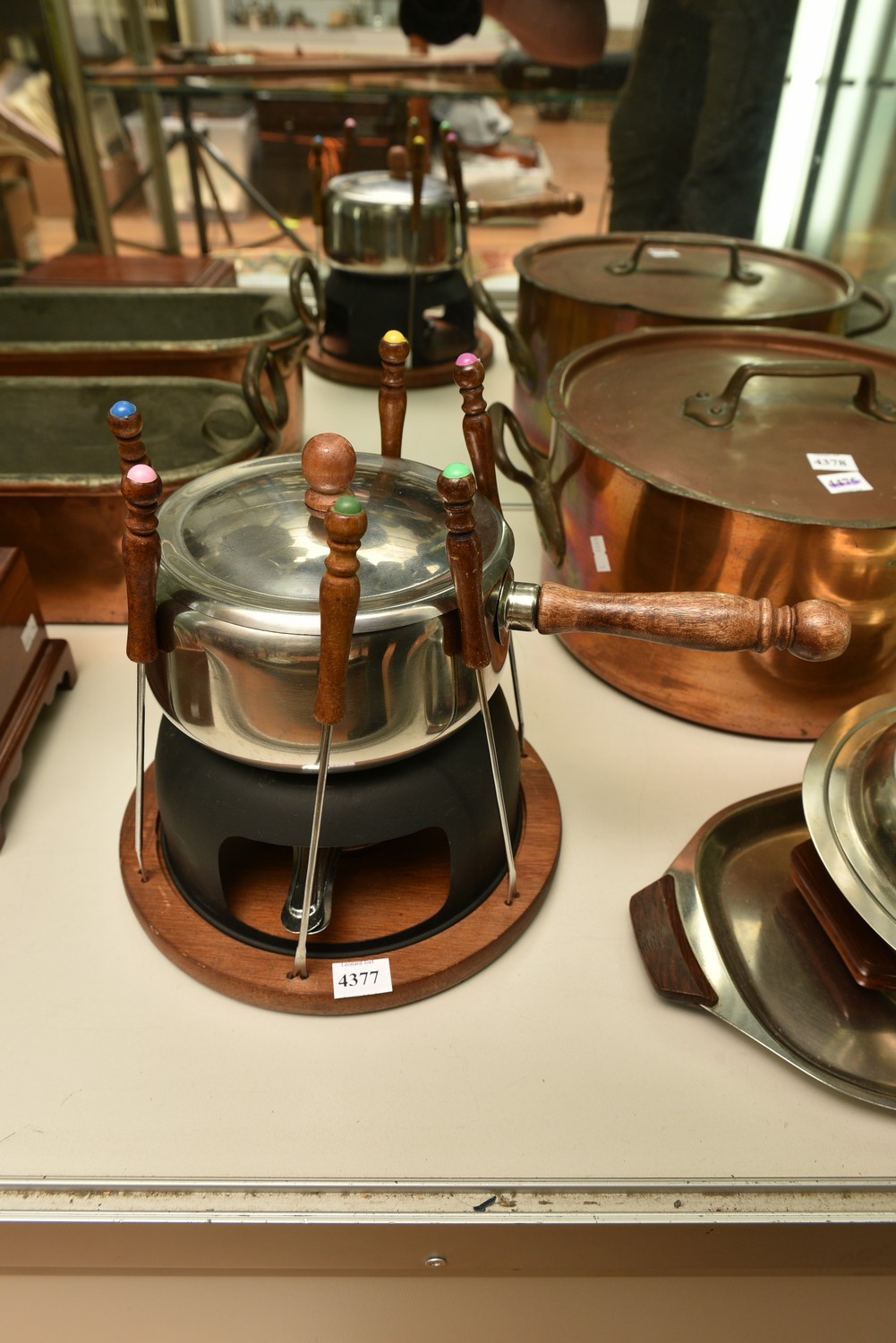 A RETRO STAINLESS STEEL FONDUE SET, LEONARD JOEL LOCAL DELIVERY SIZE: SMALL