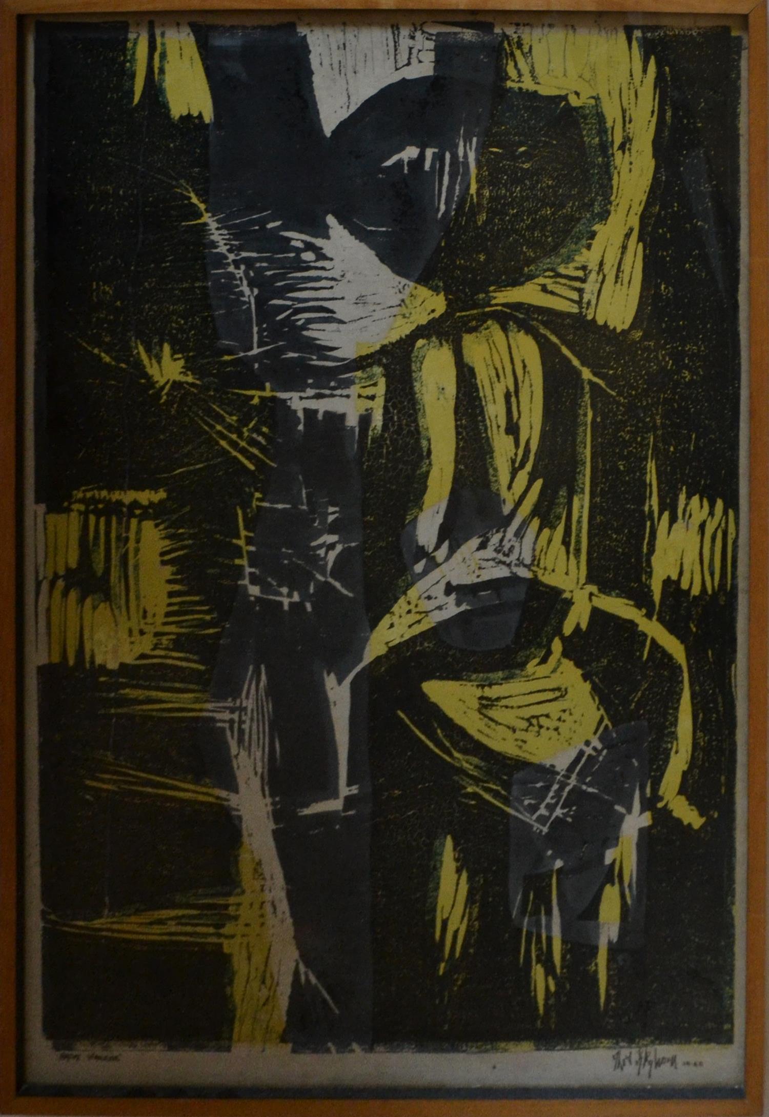 THOMAS GLEGHORN, NATIVE WARRIOR 1960, WOODBLOCK, EDITION UNKNOWN, 66 X 45CM, FRAMED: 72 X 50CM, LEONARD JOEL DELIVERY SIZE: MEDIUM